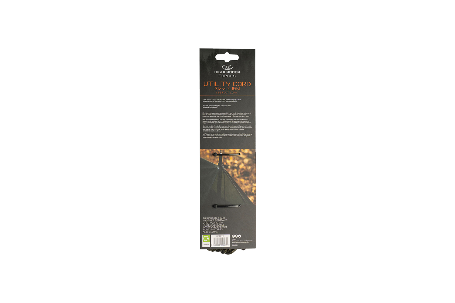 Highlander Forces Abspannleine 3mm x 15m Oliv – Robustes Abspannseil für Tarp, Zelt & Outdoor