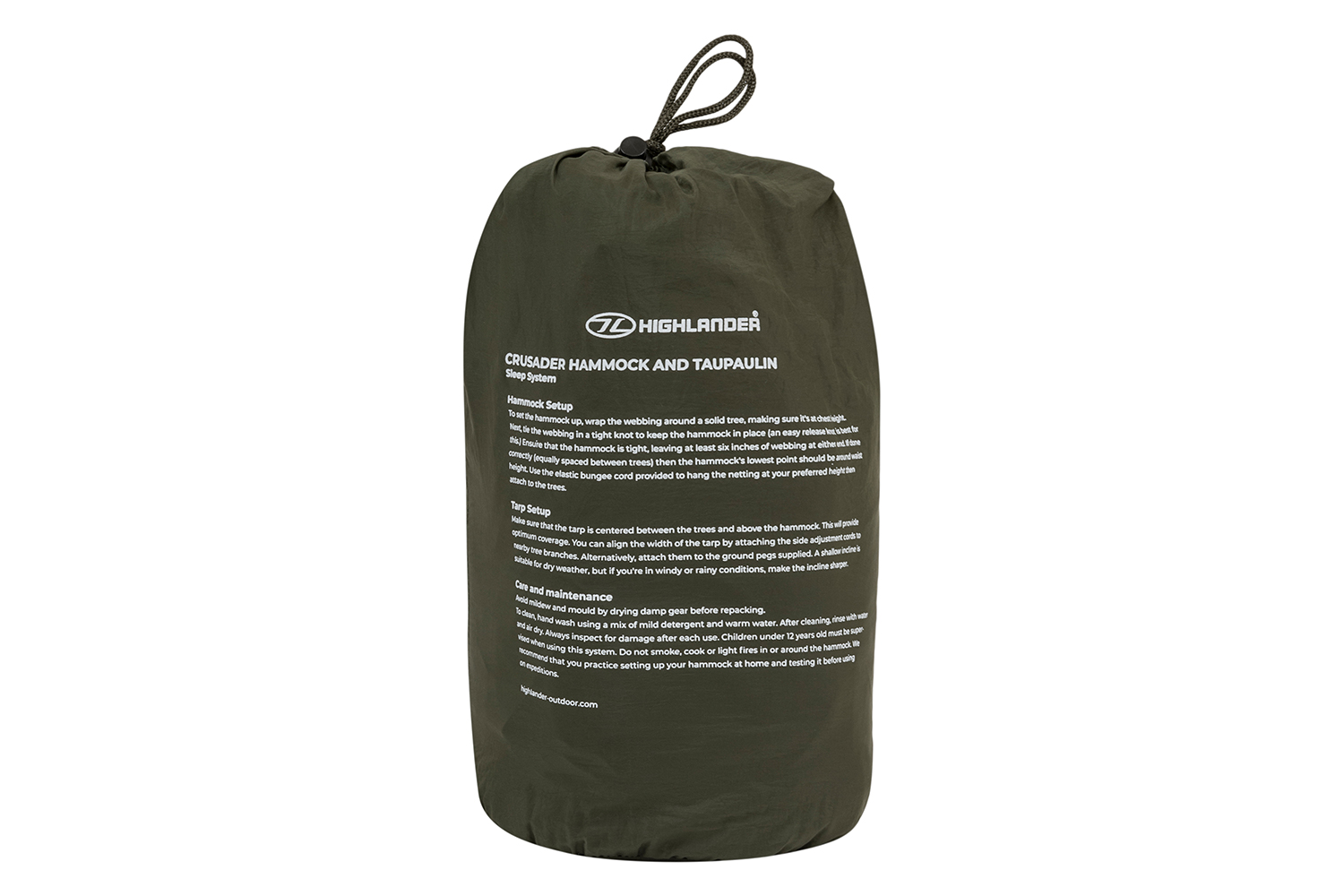 Ob beim Camping, Trekking, Bushcraft oder auf Expeditionen, die Highlander Crusader Waterproof Hammock bietet eine zuverlässige, komfortable und geschützte Schlaflösung für jede Umgebung.