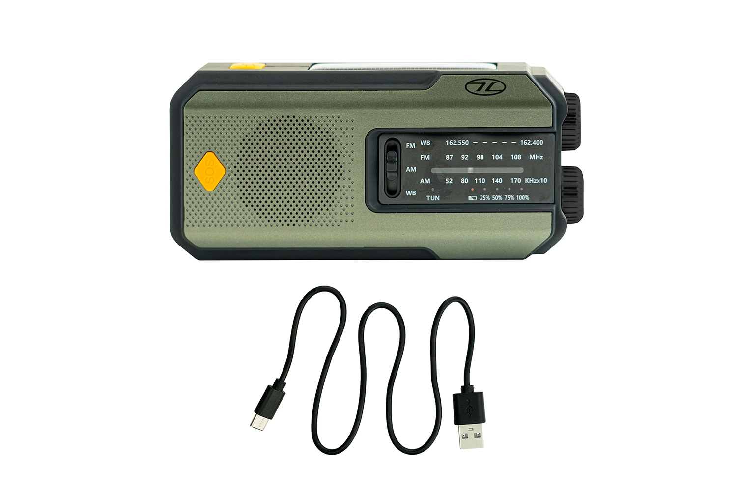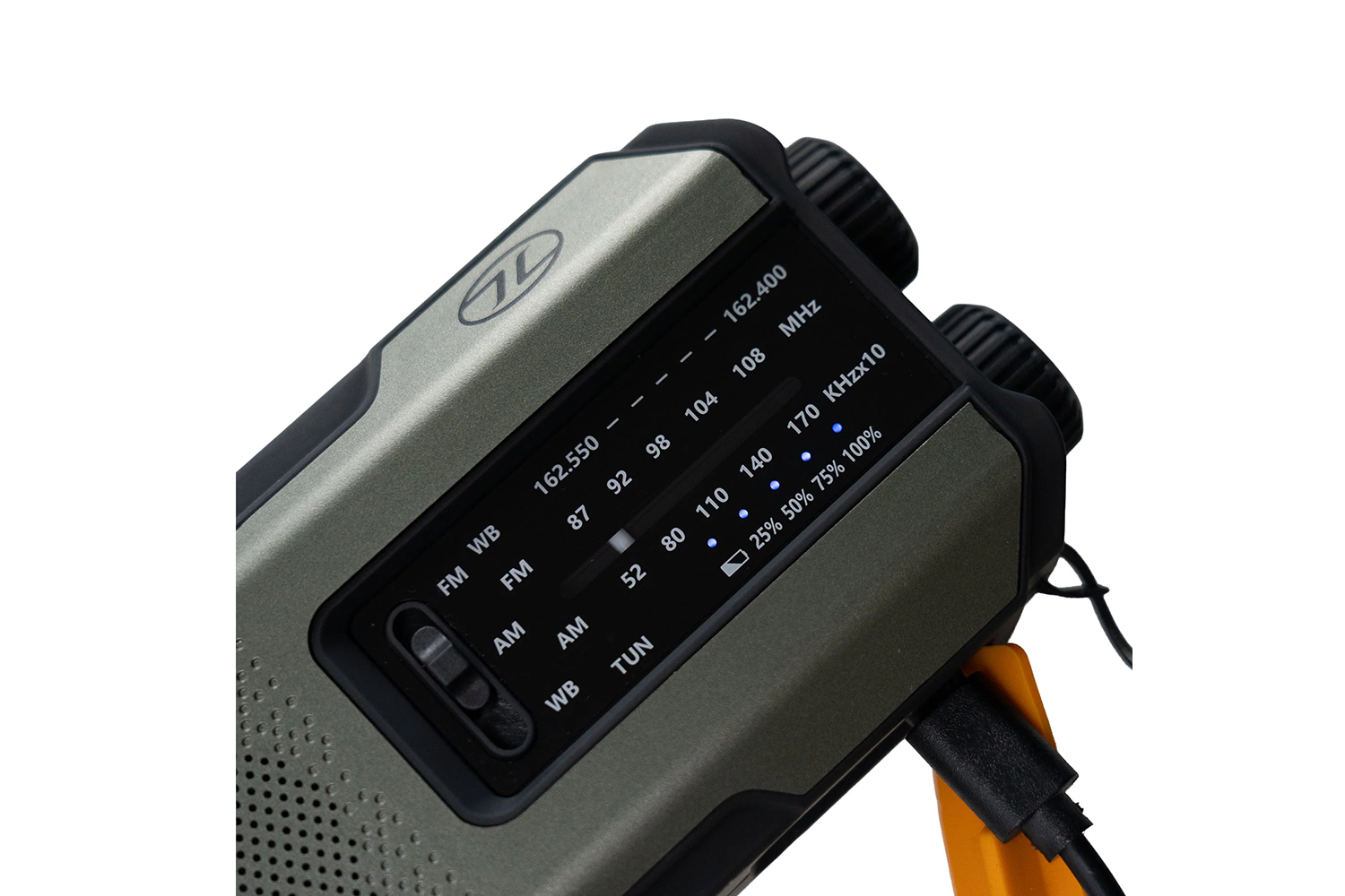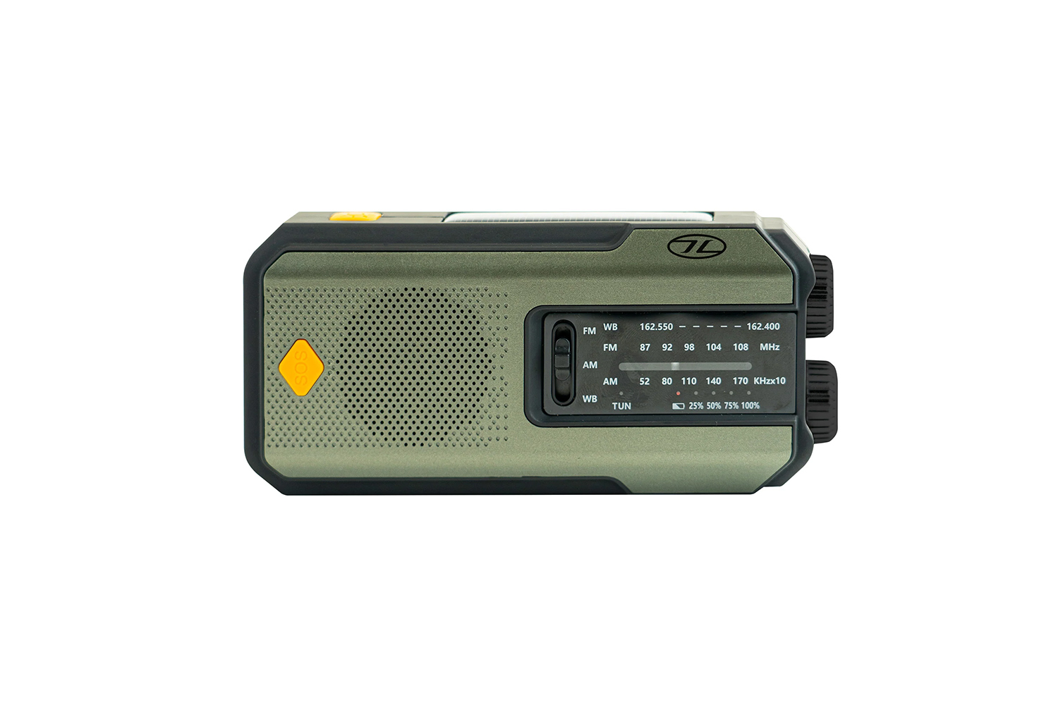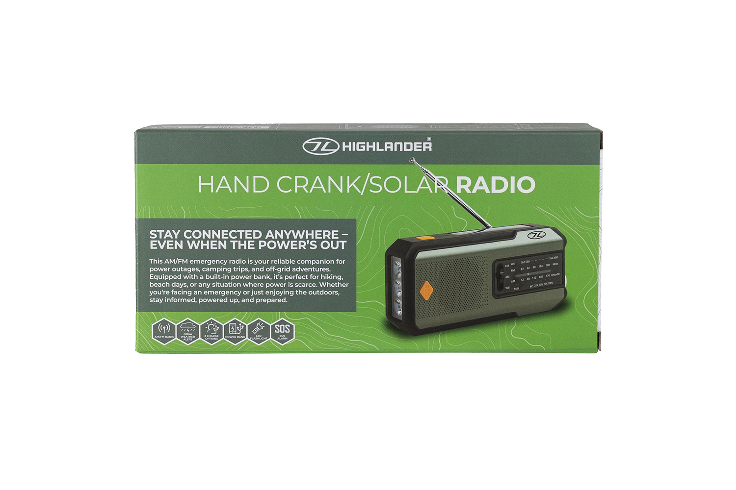 Mit dem Highlander Emergency Survival Hand Crank Solar Radio bist du bestens vorbereitet – egal ob im Gelände oder in einer Ausnahmesituation.