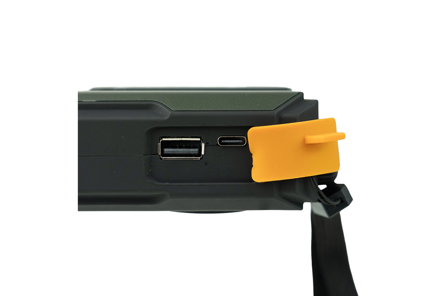 Das Gerät verfügt über eine Powerbank-Funktion, mit der du dein Smartphone oder andere USB-Geräte laden kannst. Zusätzlich sorgt die integrierte LED-Taschenlampe für Licht bei Dunkelheit.
