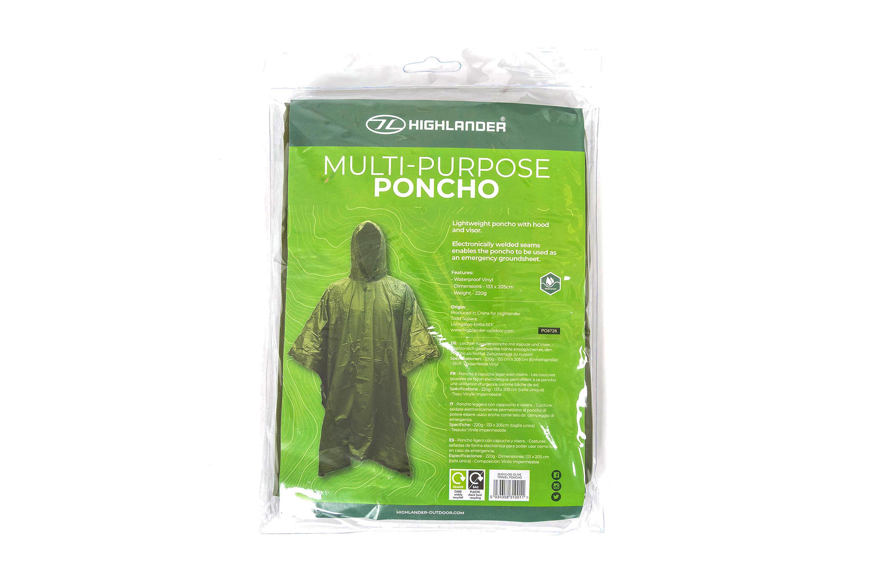 Highlander Multi-Purpose Poncho Olive – Leichter Regenponcho für Outdoor & Einsatz
