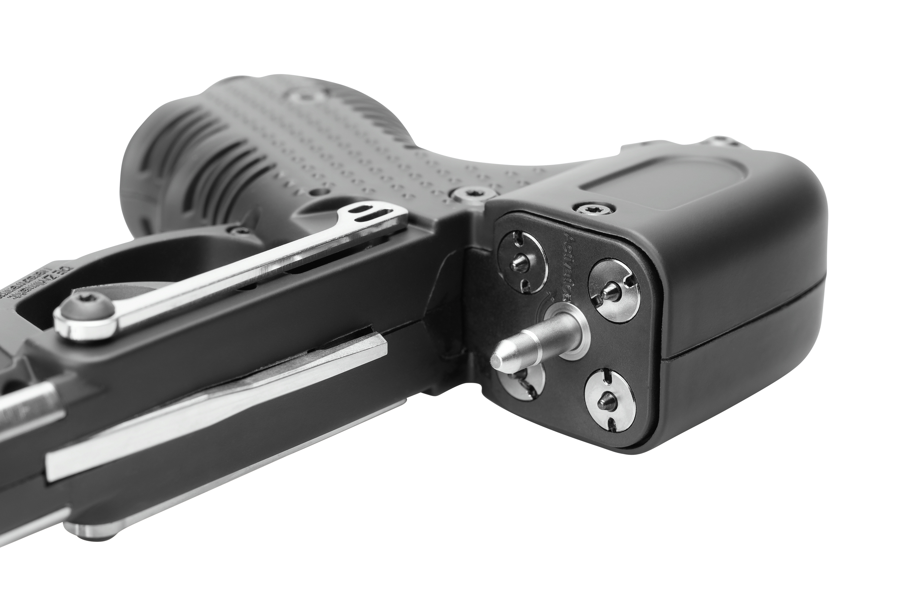 Dank spezieller Kartuschen kann man mit dem PIEXON JPX 6 mit Ziellaser Selbstverteidigung lernen und so auf Notfallsituation vorbereitet sein. Die Farbe der Wechselaufsätze gibt Auskunft darüber, ob die Wirkstoff-Flüssigkeit (schwarz oder orange) oder Trainings-Flüssigkeit (blau) enthalten ist.