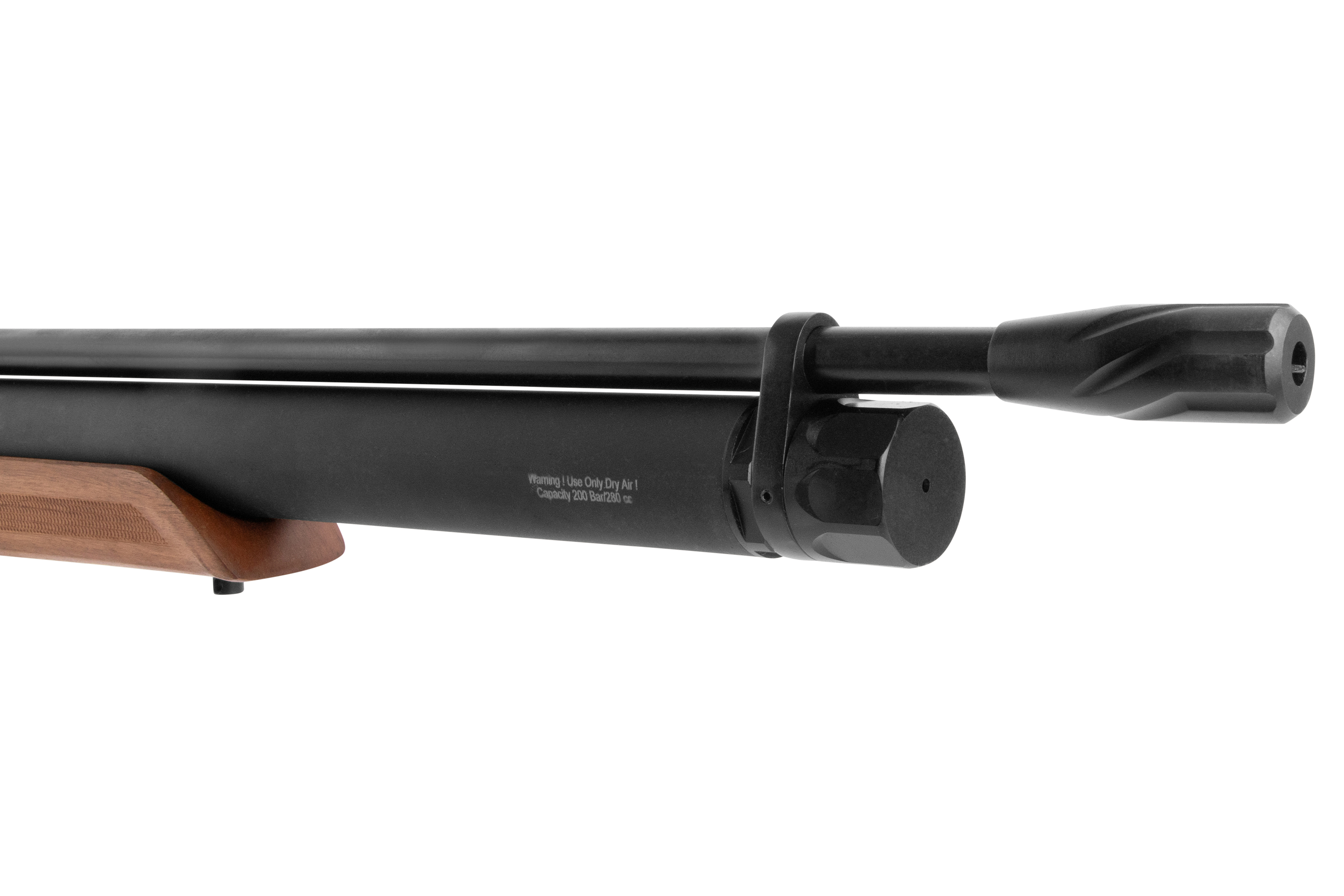 Der maximale Fülldruck von 250 bar und das 280 ml Kartuschenvolumen bieten eine starke Leistung und ausreichend Luft für lange Schussserien, bevor ein erneutes Befüllen erforderlich ist. Der Aluminium Presslufttank sorgt für ein geringes Gewicht und gleichzeitig hohe Stabilität. Das Befüllen der Pressluft Waffe erfolgt einfach und schnell über den Standard Foster Anschluss, der kompatibel mit gängigen Pressluftpumpen, Pressluftfalschen und Pressluft Kompressoren ist. Das Reximex Lyra Druckluft Gewehr dir einen hochwertigen Walnuss Schaft, der nicht nur optisch ein highlight, sondern auch sehr funktional ist. Die Wangenauflage ist für Links- und Rechtsschützen gleichermaßen geeignet und der Pistolengriff mit Fischhaut bietet optimalen Halt für maximale Kontrolle. Die gummierte Schaftkappe sorgt für zusätzlichen Komfort.