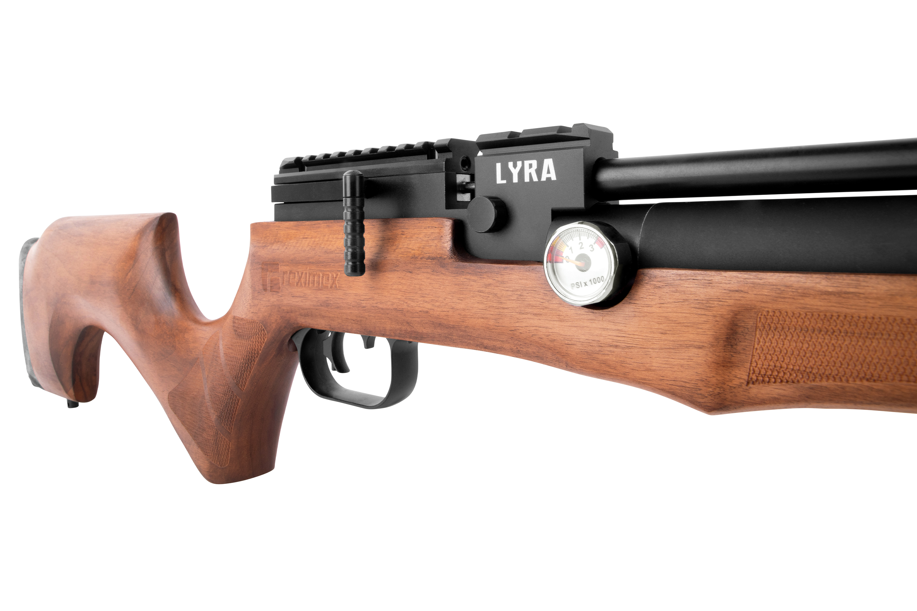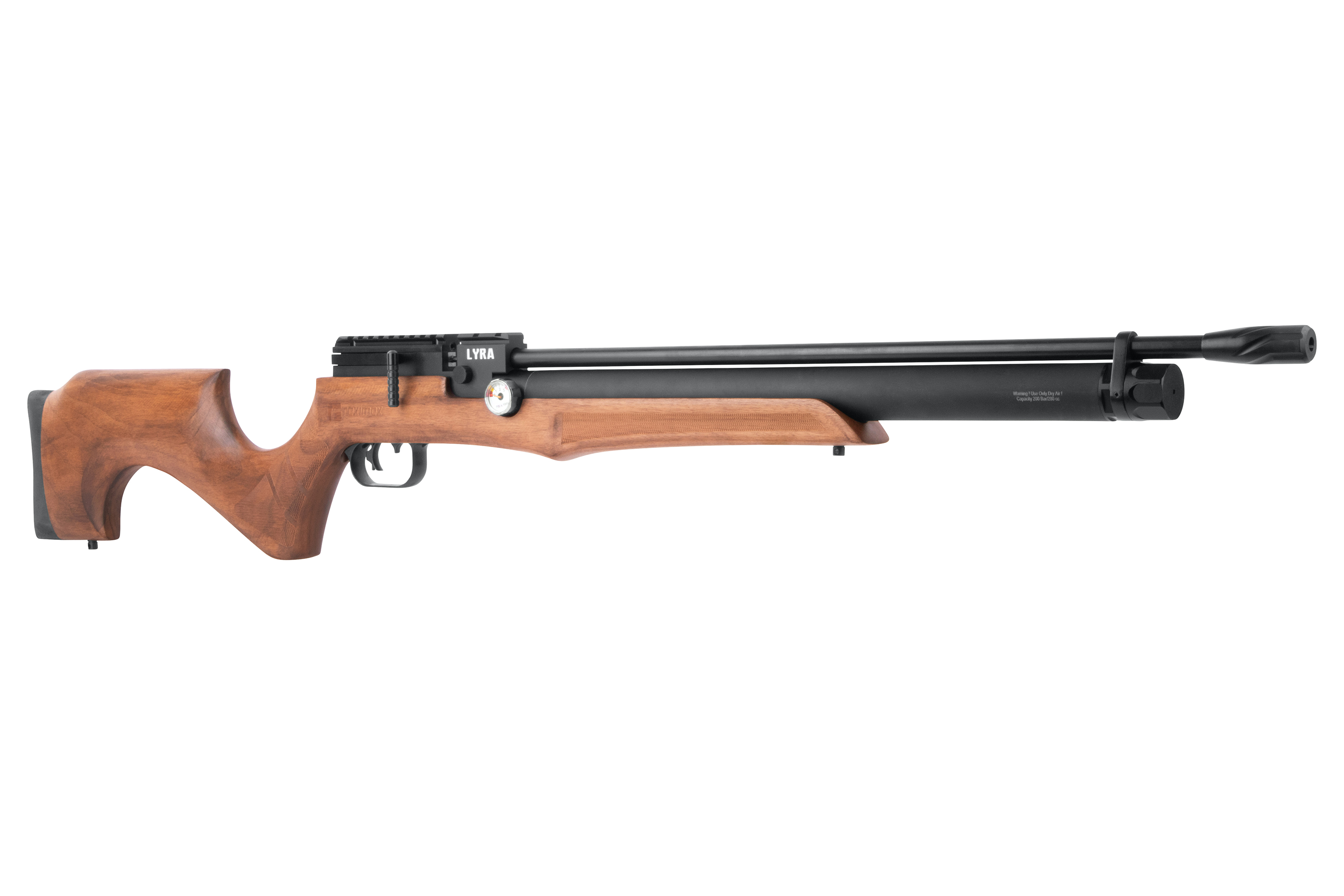 Das Reximex Lyra ist ein leistungsstarkes Pressluftgewehr im Kaliber 4,5mm Diabolo, dass zu den freien Waffen ab 18 Jahren zählt. Mit einem ummantelten, gezogenen 580 mm Lauf und einem Standard ½‘‘ UNF Gewinde für Luftgewehr Schalldämpfer unter der angebrachten Mündungskappe bietet das Druckluftgewehr eine Präzision und Flexibilität. Als Seitenspanner Gewehr ermöglicht das Reximex Lyra eine schnelle und einfache Handhabung, während das elegante Design und die hochwertigen Materialien sowohl Links- als auch Rechtsschützen ansprechen.