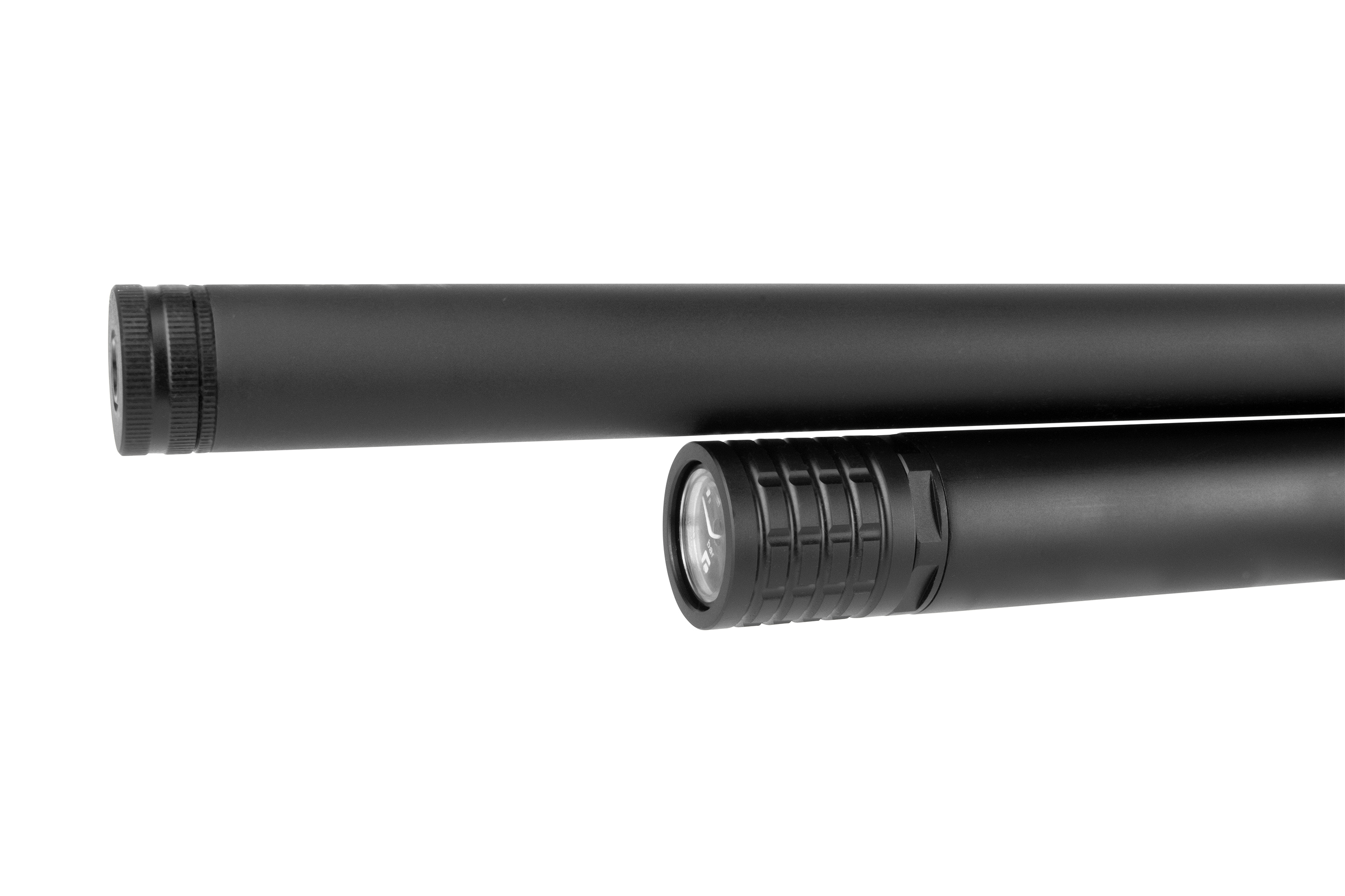 Das PCP Gewehr ist mit einem leistungsstarken und robusten System ausgestattet, das eine beeindruckende Schusskraft erzeugt und eine hohe Treffsicherheit gewährleistet. Das Pressluft Gewehr verfügt über eine fortschrittliche Dämpfungstechnologie für einen reduzierten Rückstoß. Der im Inneren verbaute Regulator sorgt für eine konstante Kraft und eine gleichmäßige Schussleistung. Der gezogene Lauf aus Stahl trägt ebenfalls zur Präzision bei. Ein integrierter SilentForce Schalldämpfer reduziert Schussgeräusche deutlich.