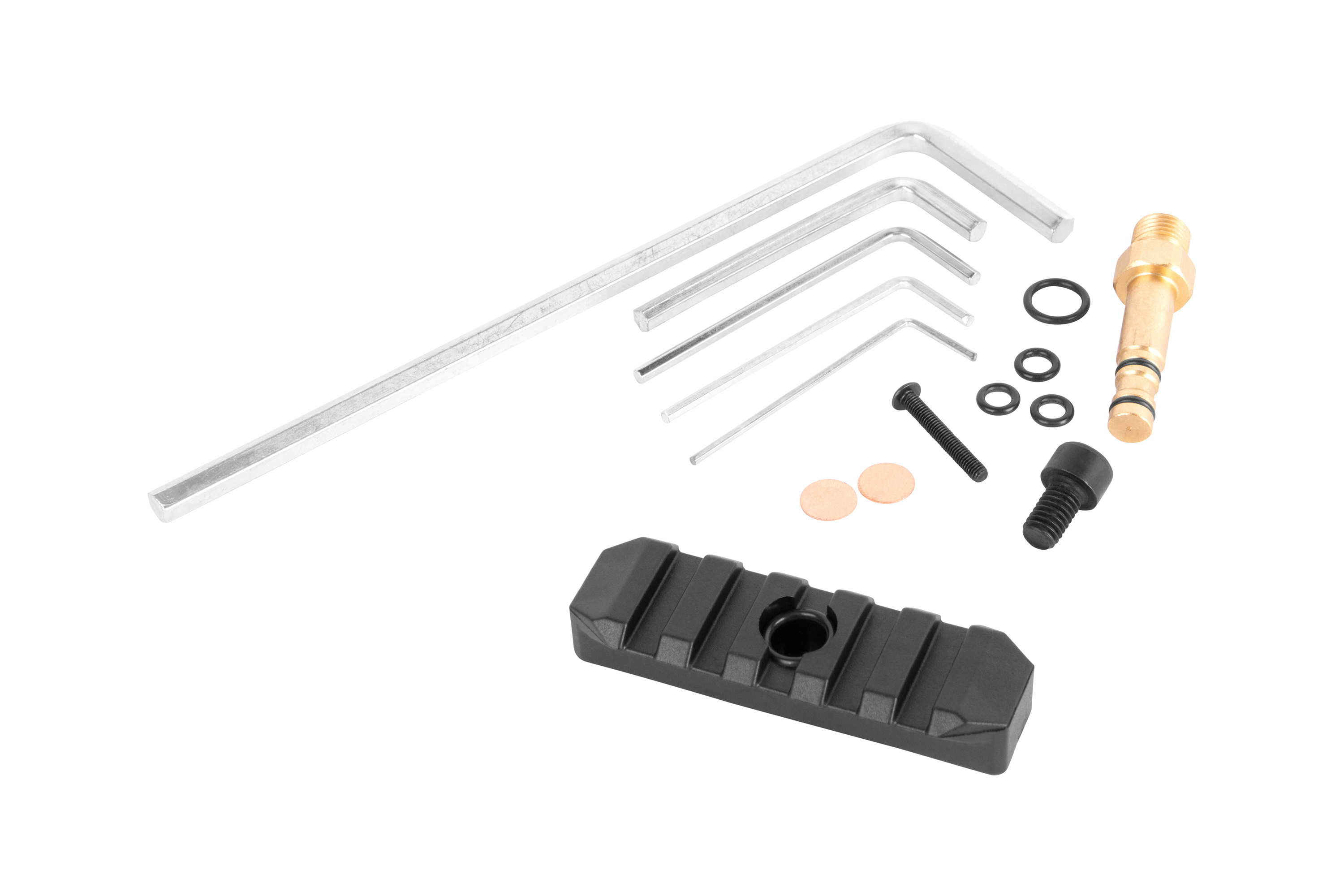 Die Griffoberfläche ist texturiert, um einen sicheren und komfortablen Halt zu gewährleisten, während die einstellbare Schaftbacke und der einstellbare Abzug eine perfekte Anpassung an deine individuellen Bedürfnisse schafft. Auf der Montageschiene oben auf der Druckluft Waffe kannst du sowohl eine Visierung, wie ein Zielfernrohr oder Red Dot Visier für 22mm Picatinny anbringen. An der Unterseite kann bei Bedarf an dem M-LOK Handguard eine kurze Picatinnyschiene (inkl.) angebracht werden, um ein Zweibein zu montieren. An das ½“ UNF Gewinde am Lauf passen viele gängige Schalldämpfer.