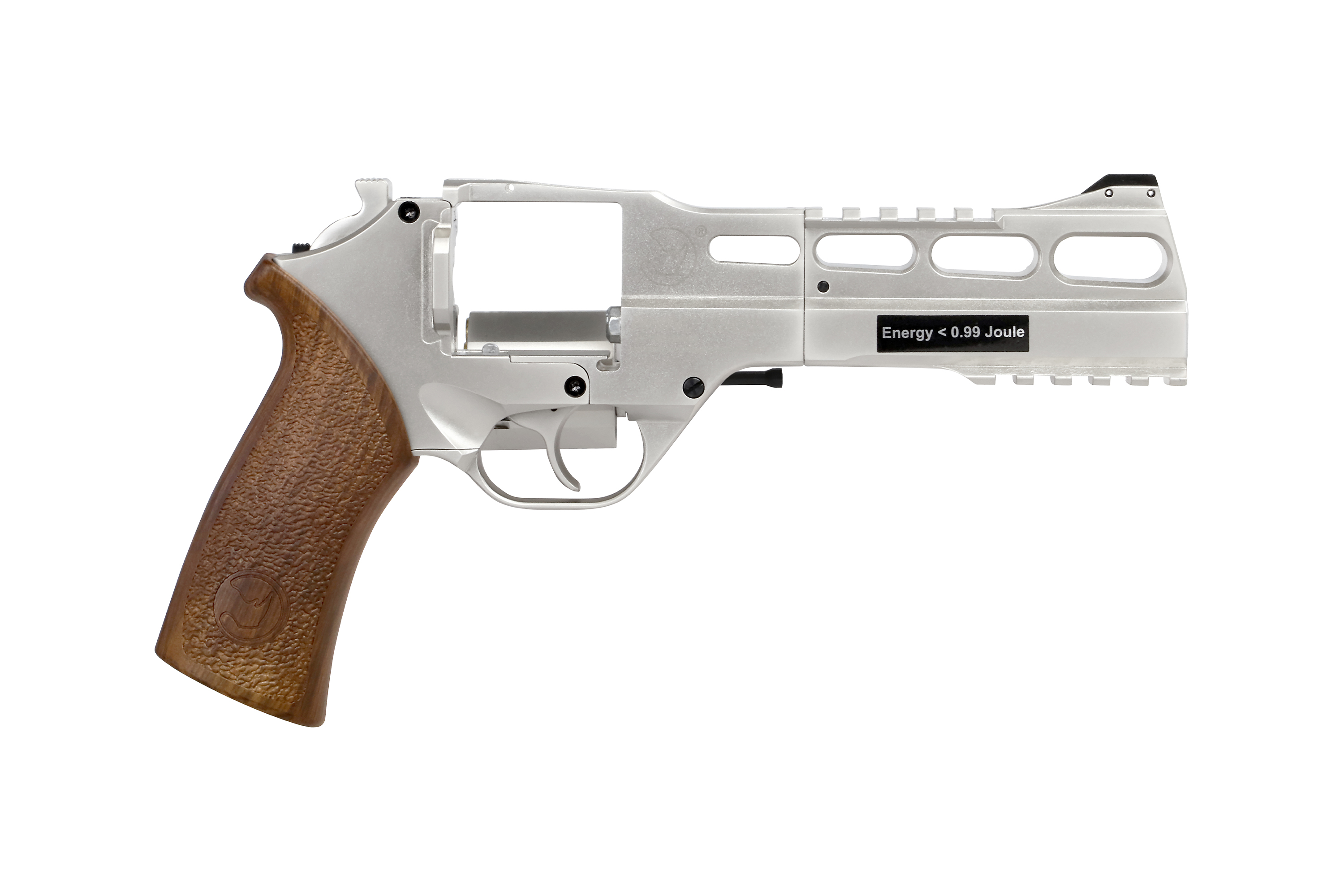 Der Rhino 60DS in der Co2 Variante ist ein detailgetreuer Nachbau mit sämtlichen Originalmarkings und individueller Seriennummer. Das Design hebt diese Waffe besonders hervor, denn die Bohrungsachse ist im Vergleich zu anderen Revolvern sehr niedrig. Hierdurch wird der Mündungsanstieg durch das Abfangen der Energie durch den Arm des Schützen stark gedämmt. Auch der Rückstoß wird spürbar weniger.