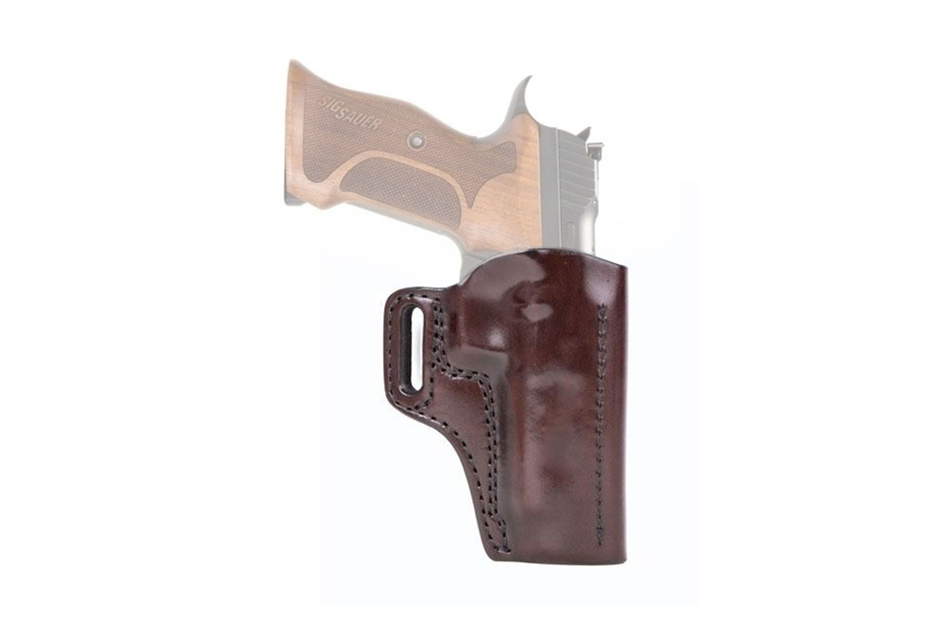 Erlebe höchste Qualität und zeitloses Design mit dem Premium Straight-Drop-Lederholster für deine SIG SAUER P210 Pistole, gefertigt von Mitch Rosen. Das handgefertigte Holster besticht durch sein kubanisch-braunes Leder, das nicht nur durch seine elegante Optik, sondern auch durch seine außergewöhnliche Haltbarkeit überzeugt.