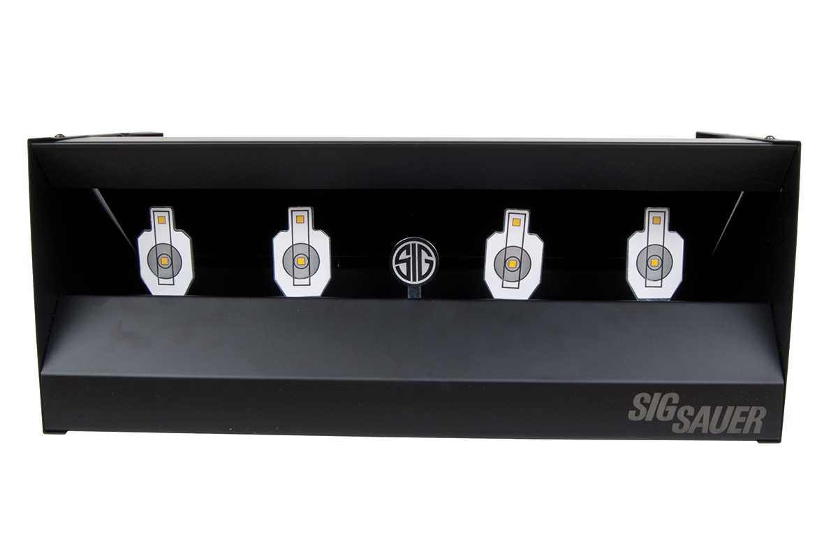 Das Schießspiel aus dem Hause Sig Sauer bietet vier Klappfallziele und ein mittiges SIG Ziel als Reset. Der robuste Kasten ist pulverbeschichtet, Ziele und Kugelfang sind aus Vollmetall.