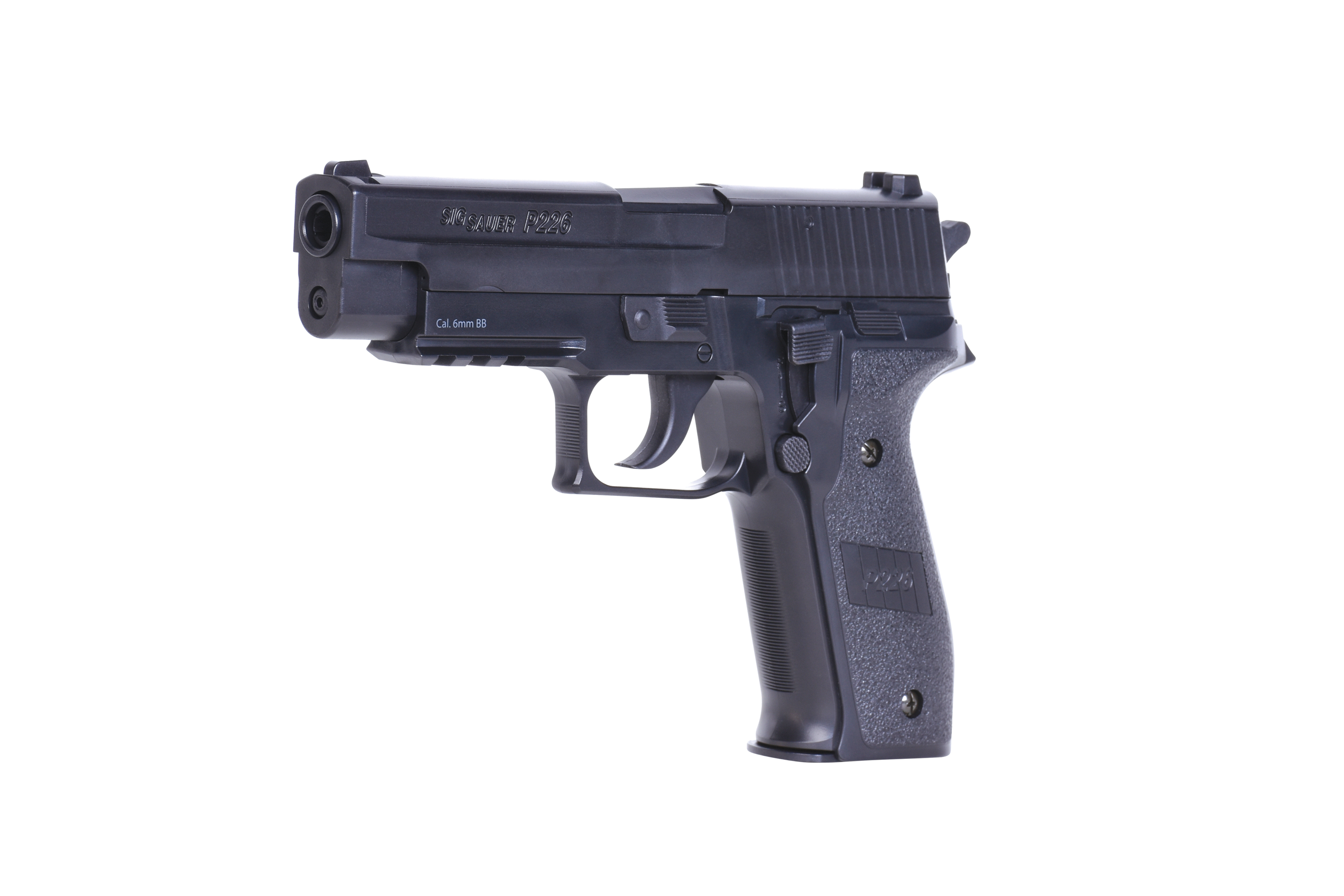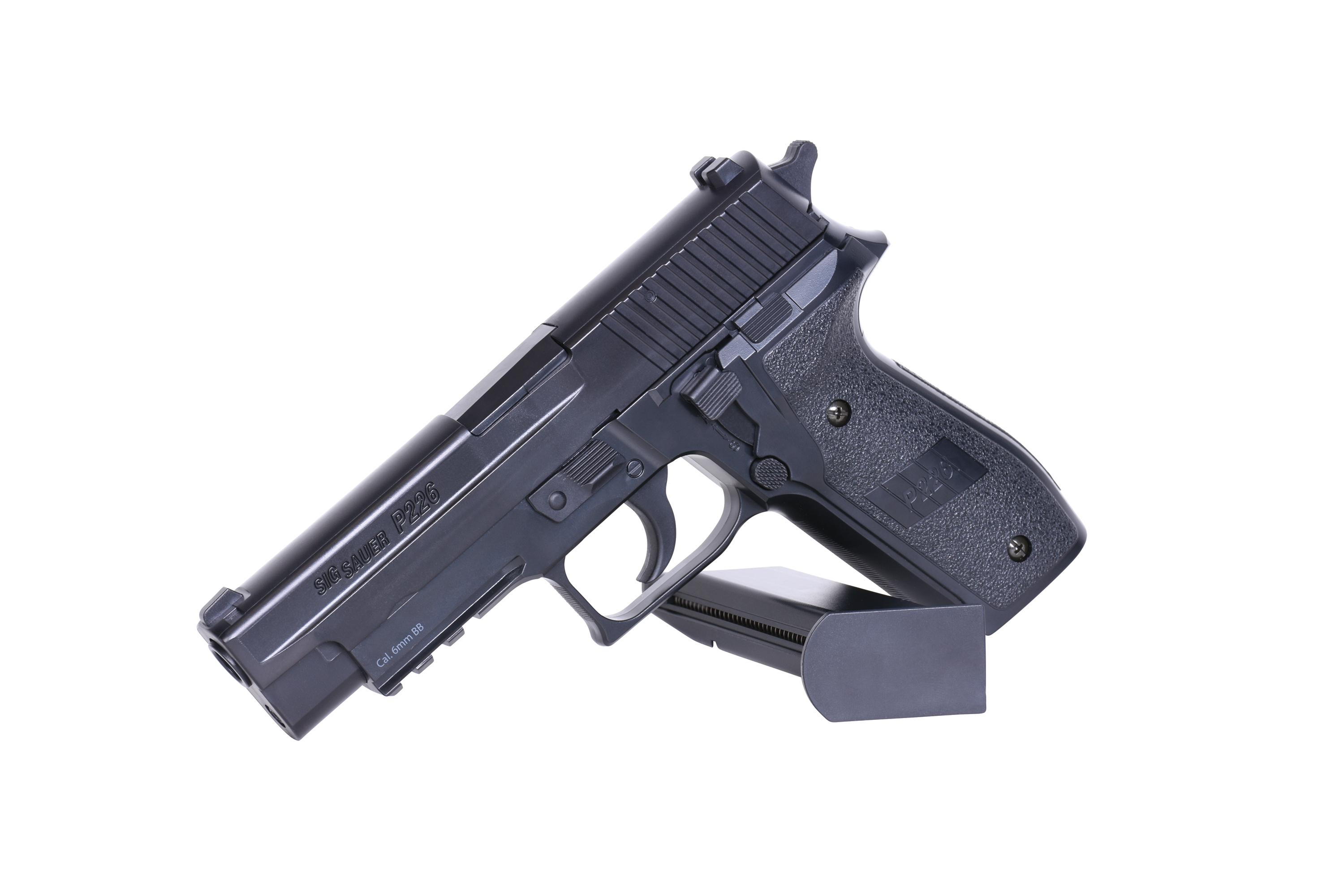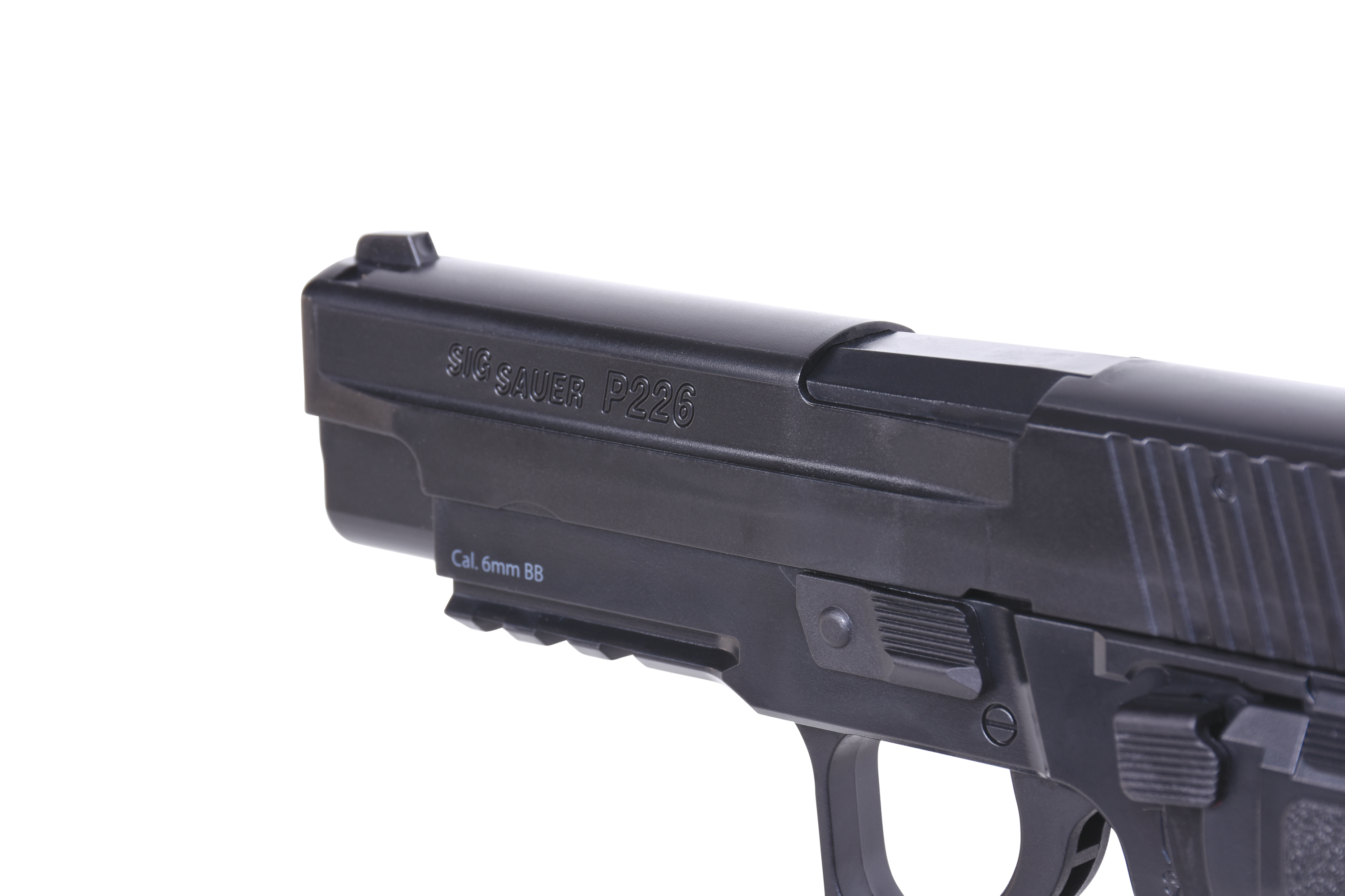 Die Airsoft-Version der SIG SAUER P226 verfügt ebenfalls über ein festes Hop-Up und eine Hochspannungsfeder, die eine Geschwindigkeit von etwa 76 m/s ermöglicht. Die Zielausrichtung erfolgt dabei über eine 3-Punkt-Visierung mit weißem Punkt, unterstützt durch eine Picatinny-Schiene unterhalb des Laufes.
