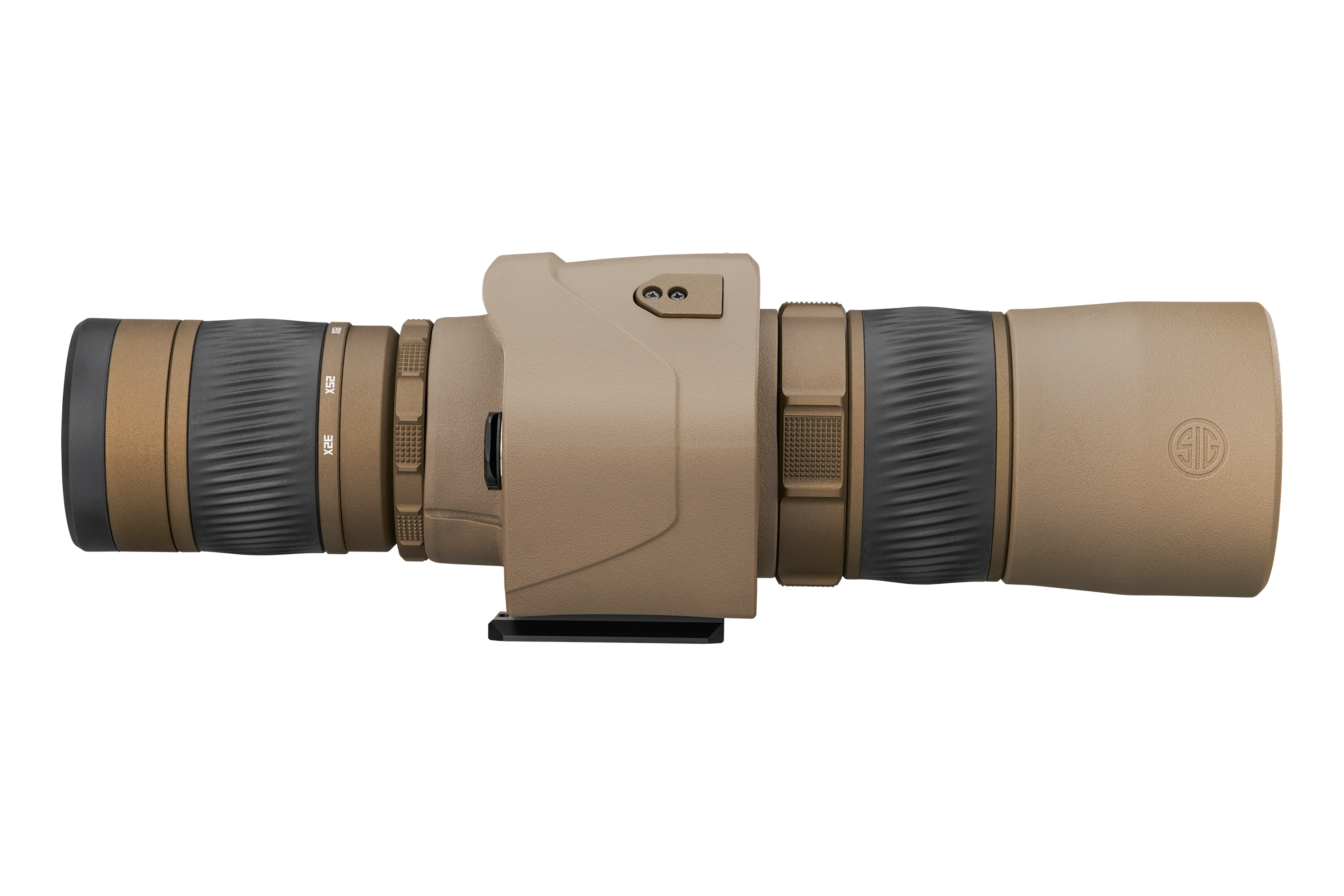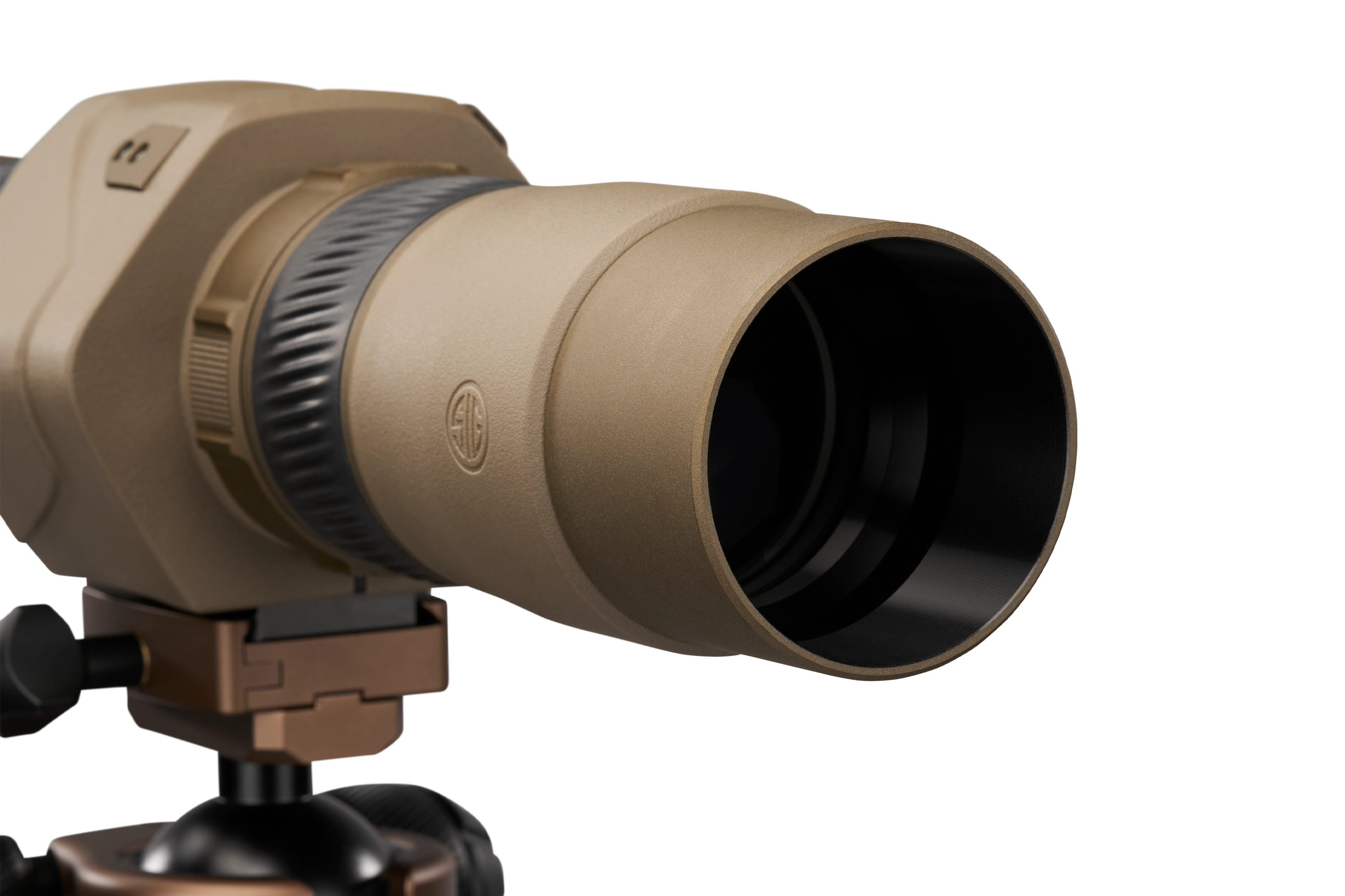SIG Sauer OSCAR8 Spektiv – Präzision und Leistung für Naturbeobachtungen und JagdSIG SAUER Electro Optics steht für modernste Optiklösungen, die Klarheit, Präzision und Zuverlässigkeit auf höchstem Niveau bieten – ideal für Schützen in jeder Situation.Das SIG Sauer OSCAR8 Spektiv bietet eine außergewöhnliche optische Leistung und vielseitige Funktionen für anspruchsvolle Naturbeobachtungen und Outdoor-Aktivitäten. Mit einer beeindruckenden Vergrößerungsreichweite von 27-fach bis 55-fach ermöglicht es, weit entfernte Objekte in bemerkenswerter Klarheit zu betrachten. Dieses Spektiv ist ideal für die Vogelbeobachtung, die Beobachtung von Wildtieren, Landschaften und anderen Naturphänomenen. Spektiv für die Jagd gesucht? – Das OSCAR8 ist auch bei Jägern beliebt, die ihre Ziele aus sicherer Entfernung prüfen möchten.Für Sportschützen und Naturfreunde ist das Spektiv mit einem fortschrittlichen HDX Advanced optischen System ausgestattet, das sowohl High Definition (ED) als auch High Transmittance (HT) Glas umfasst. Diese Kombination ermöglicht eine ultra-hohe Auflösung und Lichtdurchlässigkeit. Mit dieser fortschrittlichen Optik liefert das OSCAR8 gestochen scharfe und detailreiche Bilder. Das Schmidt-Pechan-Prisma in Verbindung mit HD-Glas sorgt für eine unübertroffene Korrektur von chromatischen und sphärischen Aberrationen, wodurch klare und lebendige Bilder ohne störende Artefakte erzeugt werden.Die Sig Sauer Spectracoat™-Beschichtung der Linse sorgt für eine hocheffiziente, ultraweite Breitband-Antireflexion. Diese reduziert Oberflächenreflexionen auf extrem niedrige Werte über das gesamte sichtbare Spektrum hinweg und ermöglicht eine überragende Lichttransmission. Das OSCAR8 verfügt über einen geneigten Okularauszug und einen drehbaren Stativanschluss, was flexible Betrachtungswinkel ermöglicht. Die verstellbaren Augenmuscheln bieten optimalen Komfort, auch für Brillenträger.Das Spektiv ist wasserdicht und beschlagfrei, was eine hervorragende Leistung unter allen Umweltbedingungen gewährleistet. Das robuste Gehäuse aus Flugzeugaluminium mit rutschfester Gummierung bietet sicheren Halt und Langlebigkeit. Zusätzlich wird das OSCAR8 mit einer SIG SAUER Neoprenabdeckung für zusätzlichen Schutz und einfachen Transport geliefert.Insgesamt bietet das SIG Sauer OSCAR8 27-55x80 Spektiv herausragende optische Leistung und Robustheit für Naturbeobachtungen, Jagd und Outdoor-Abenteuer – bereit für jedes Wetter und jedes Gelände.