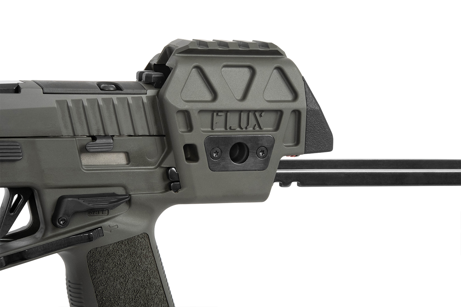 Die P320-FLUX LEGION wurde unter Einbeziehung von Feedback aus professionellen Anwendern entwickelt und überzeugt durch zahlreiche praxisorientierte Features. Die schnell ausziehbare Schulterstütze lässt sich mit nur einem Finger ausfahren und sorgt für zusätzliche Kontrolle und Stabilität. Ein integrierter Flared Magwell unterstützt schnelle Magazinwechsel, während das beidseitige Dual-Magazinlöse-System maximale Bedienfreundlichkeit bietet.