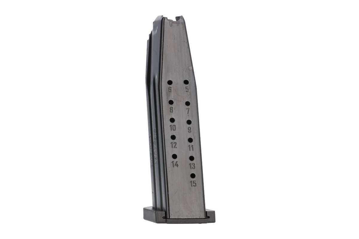 Das SIG SAUER P320 10mm Magazin fasst 15 Patronen. Das SIG SAUER P320 XTEN Magazin bietet ein Carbonstahl Gehäuse und robusten Polymer-Magazinboden. Auf der Rückseite kann man dank der Ladestandsanzeige immer seine verbleibende Schusszahl einsehen.