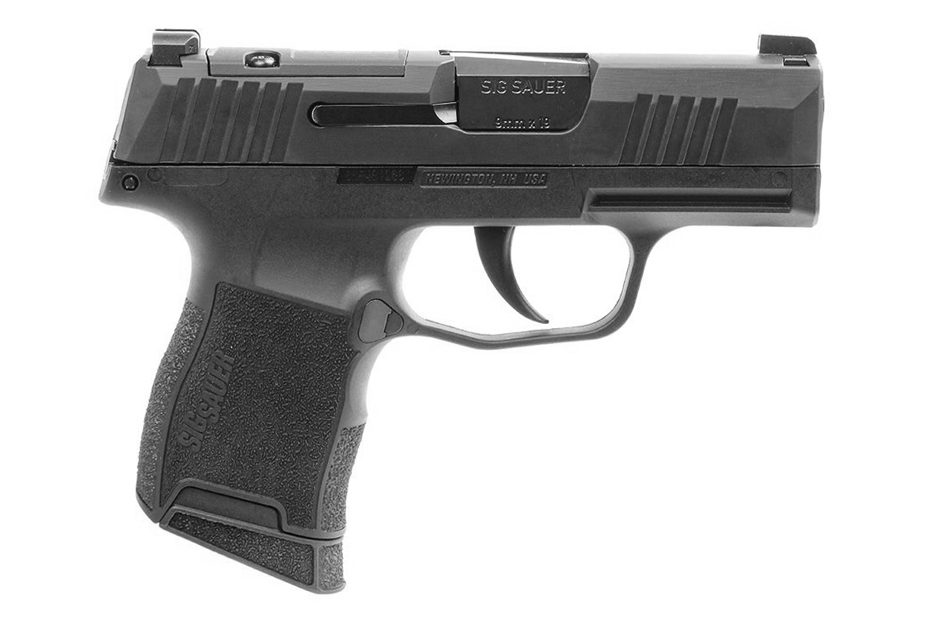 Original Standard Griffmodul für die SigSauer P365 ohne manuelle Sicherung im Kaliber 9mm Luger.Der Magazinauswurf ist im Griff vorinstalliert. Das Pistolenmagazin ist aus schlagfestem Polymer gefertigt.
