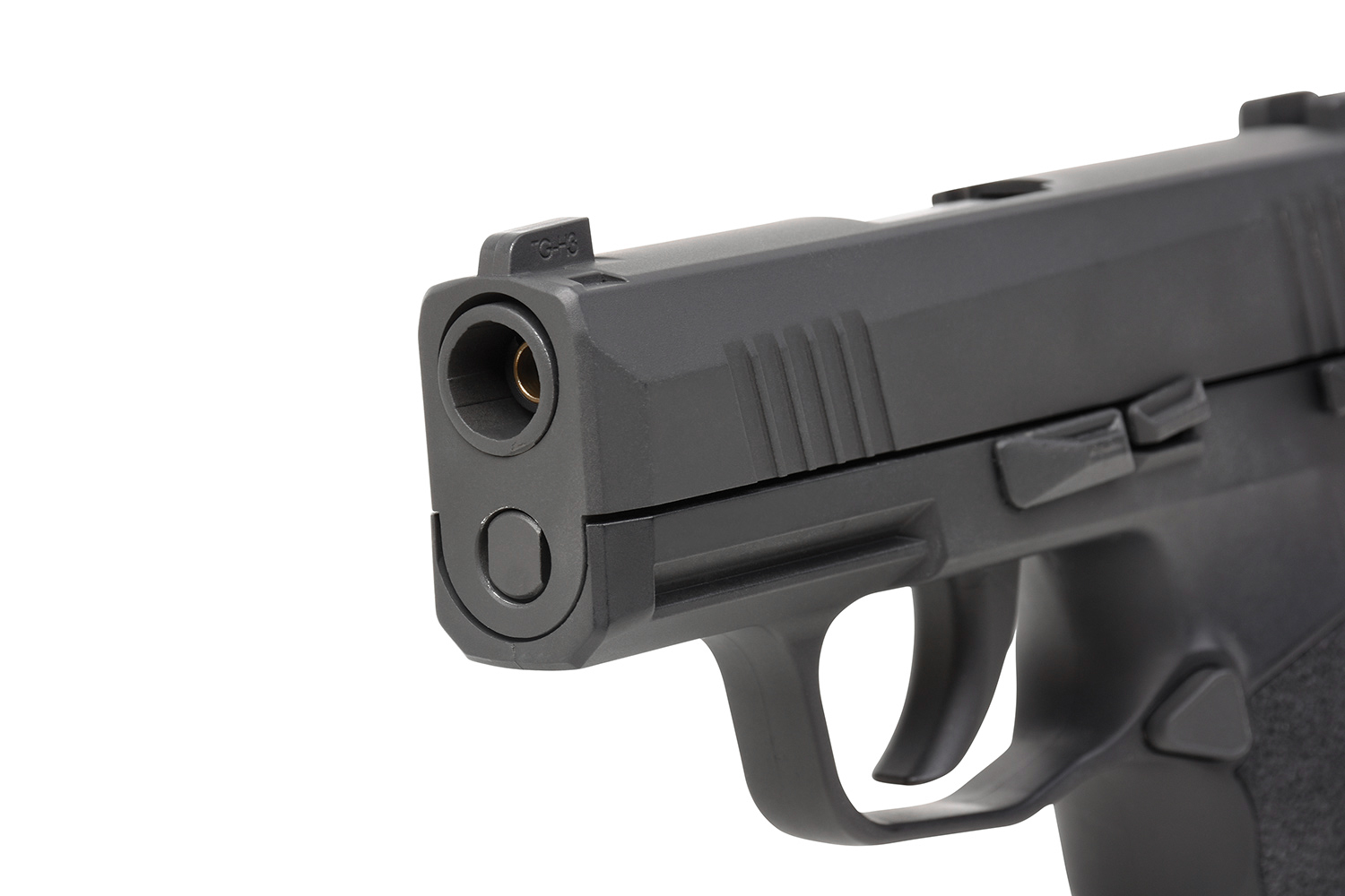 Der Antrieb des Luftdruckwaffe erfolgt über eine 12g Co2 Kapsel, die einfach in das Magazin eingesetzt wird und mit dem beiliegenden Innensechskantschlüssel angezogen wird. Die Sig Sauer P365 bietet dir, wie bei den meisten Co2 Waffen üblich, auch ein Co2 BlowBack System – der Schlitten repetiert also wie bei einer echten Waffe. Präzises Schießen gelingt garantiert dank der montierten Visierung (Kimme und Korn). Kimme und Korn einstellen ist zwar nicht möglich, aber die Kontrastpunkte auf Kimme und Korn ermöglichen ein sicheres Zielen auch bei schlechten Lichtverhältnissen. Die Sicherung ist manuell und beidseitig. Du erhältst also eine Waffe für Linkshänder und Rechtshänder. Der Abzug ist ein Single Action Abzug. Der Schlittenfang ist funktionsfähig!