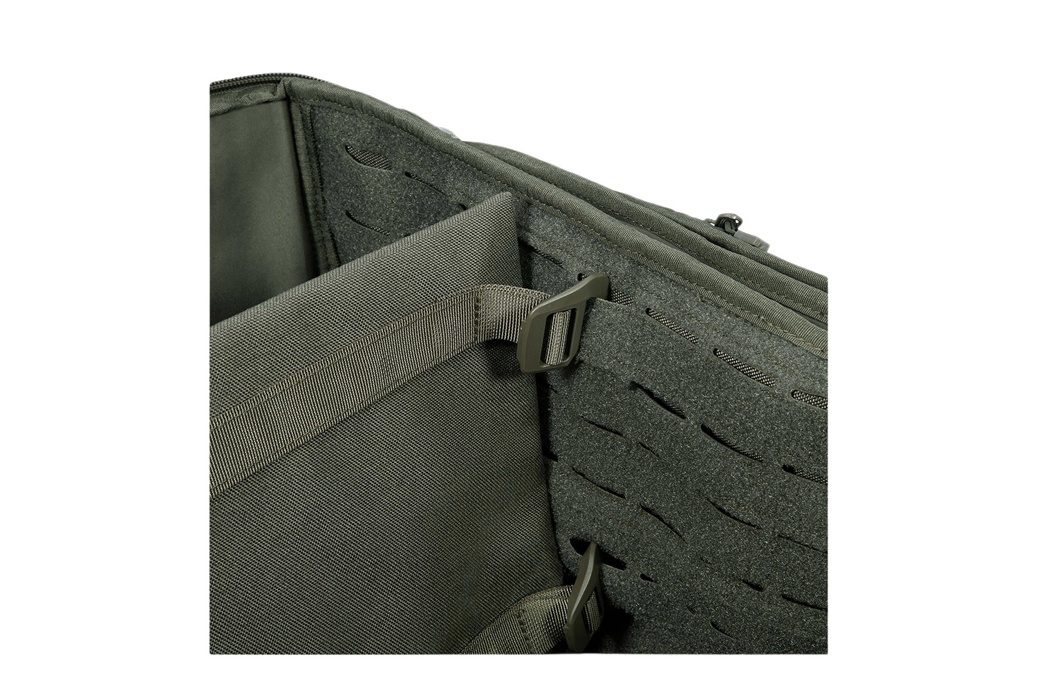 Die Trennwände werden über stabile G-Hooks direkt an den internen MOLLE-Flächen der Duffel Bag befestigt. Dadurch sitzen sie sicher im Inneren der Tasche und lassen sich gleichzeitig flexibel anpassen.