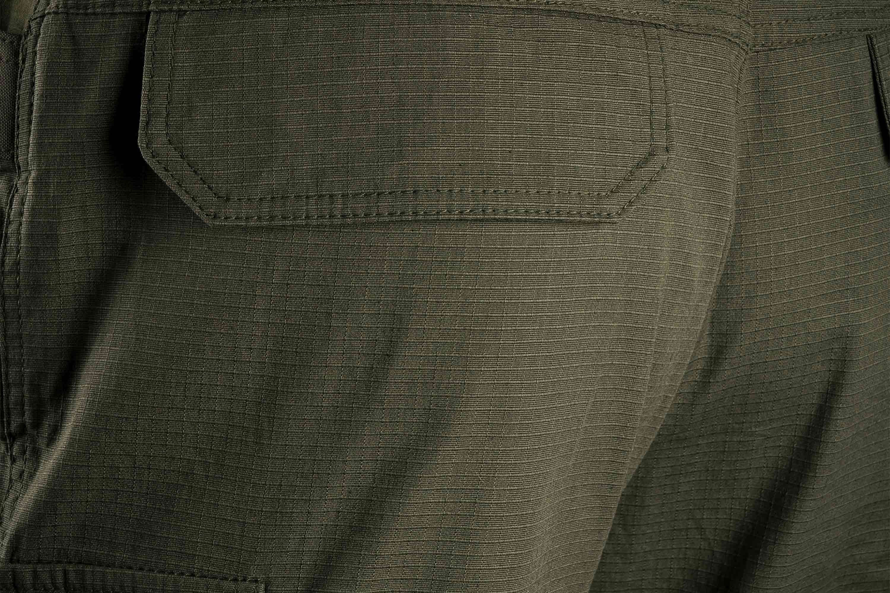 Die STOIRM Tactical Hose besteht aus widerstandsfähigem Micro-Ripstop-Gewebe, das durch seine Struktur das Weiterreißen von Beschädigungen verhindert. Die zusätzliche Teflon-Beschichtung schützt vor Schmutz und Feuchtigkeit und macht die Hose besonders pflegeleicht und langlebig.