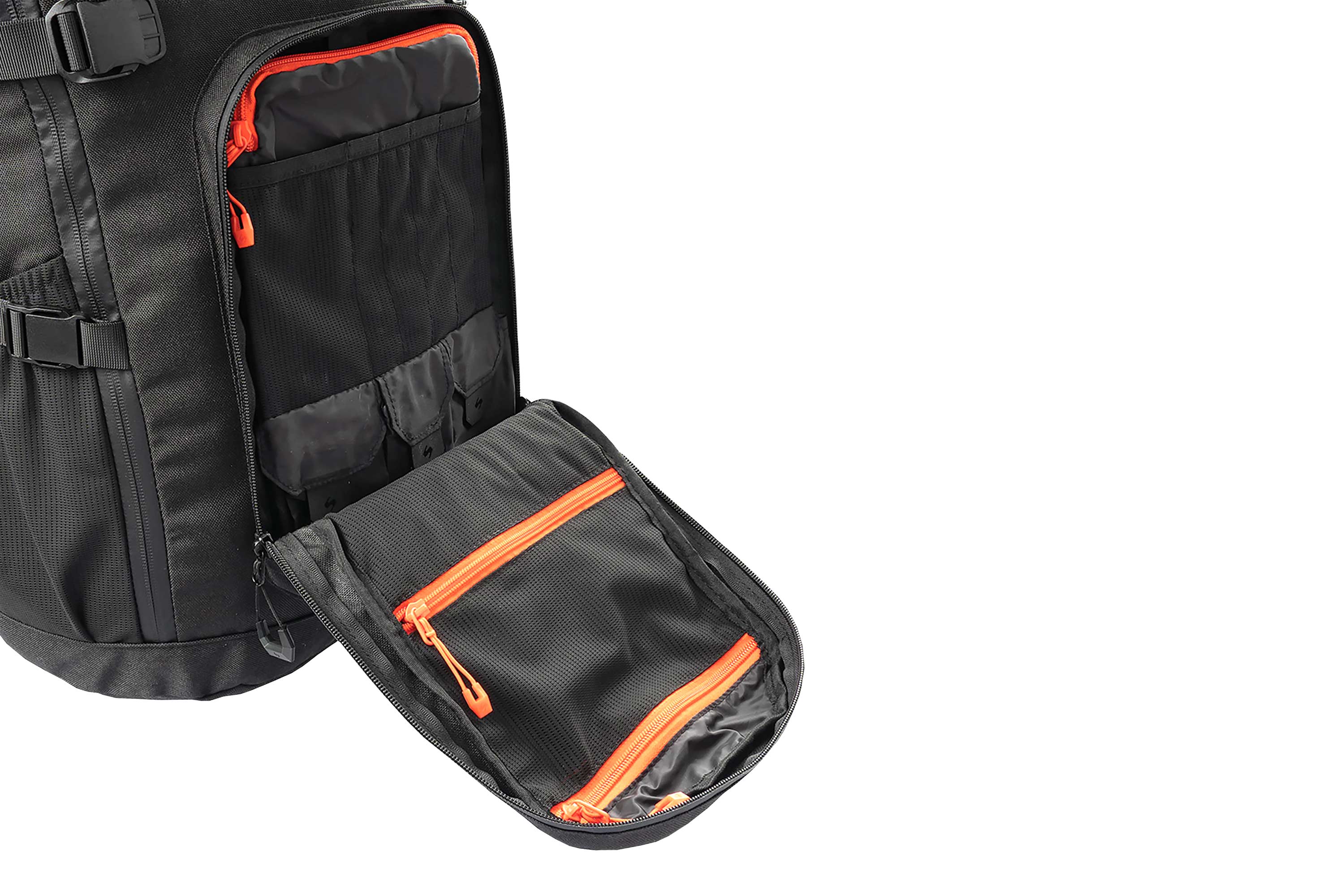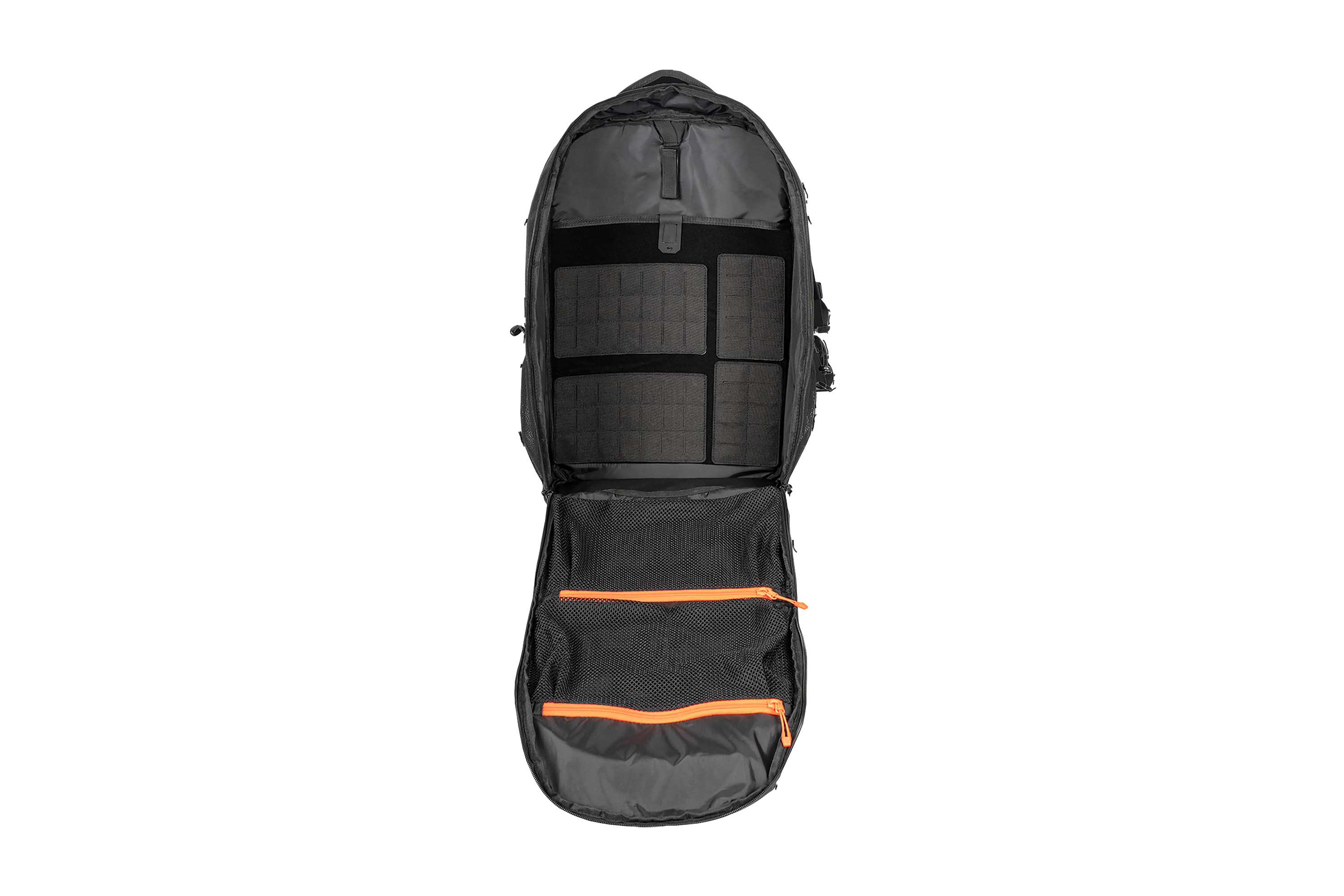 Der Innenraum lässt sich durch re-konfigurierbare MOLLE-Panels und Klettflächen individuell anpassen. Das herausnehmbare Organizer-Panel sowie die internen Mesh-Reißverschlusstaschen sorgen für Ordnung und Übersicht.