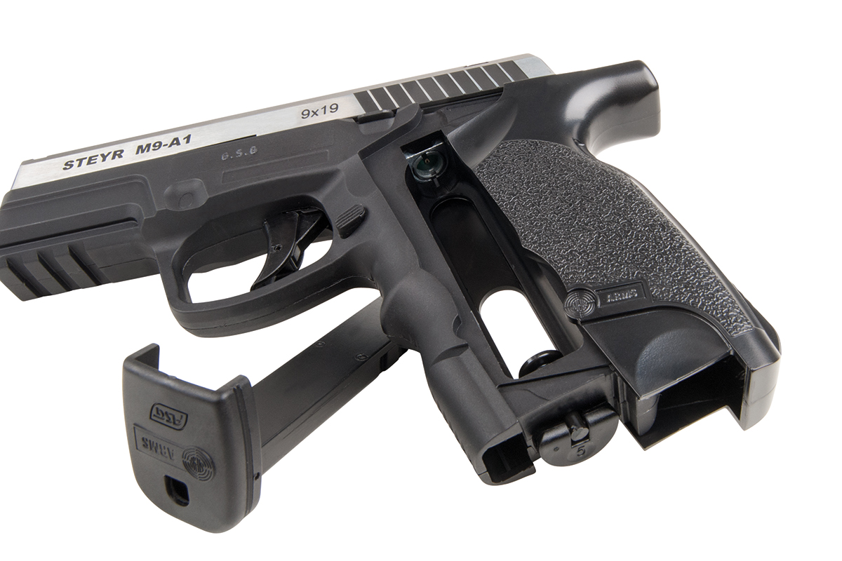 Das Magazin der Steyr M9A1 fasst 19 BB-Rundkugeln und lässt sich einfach befüllen.
