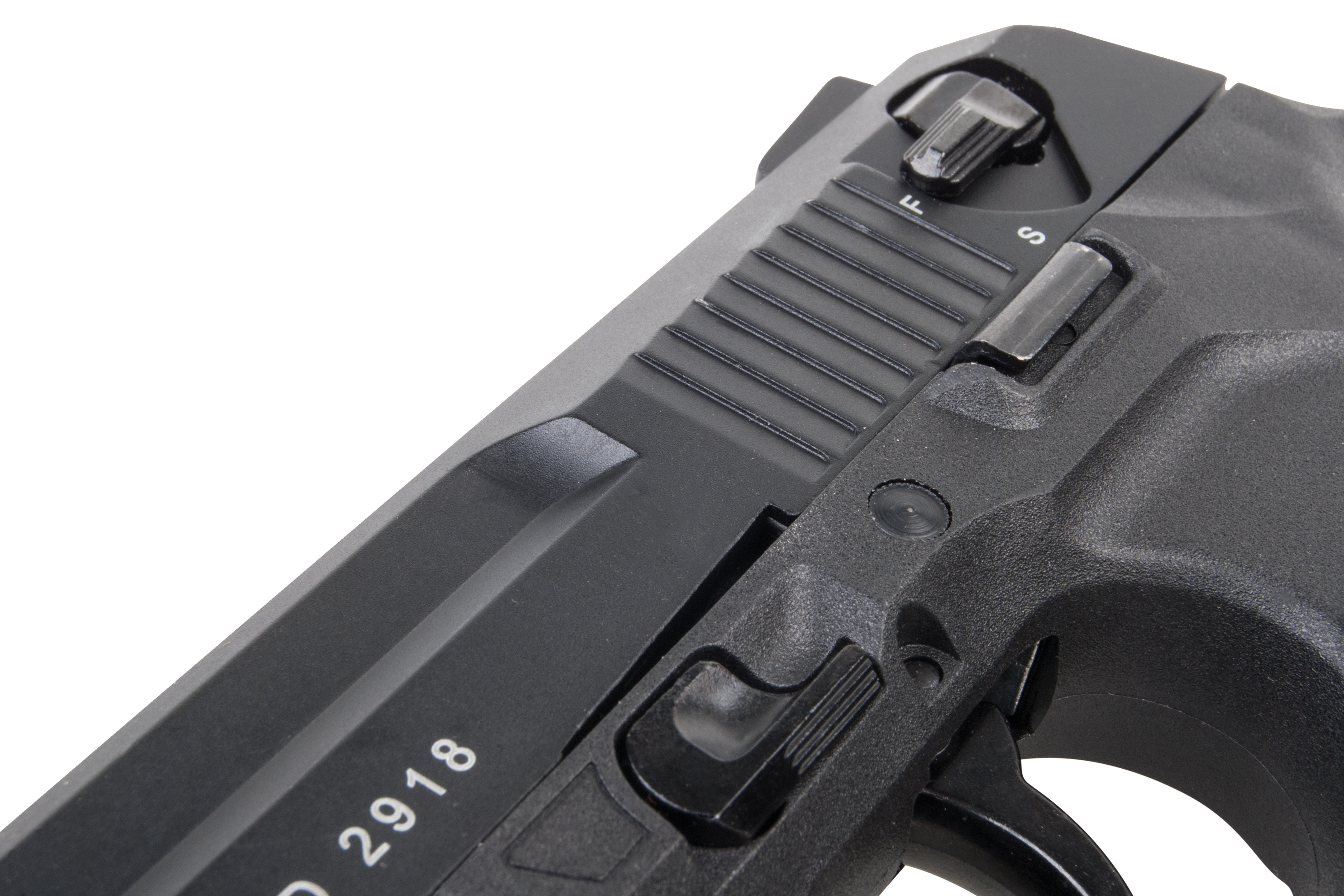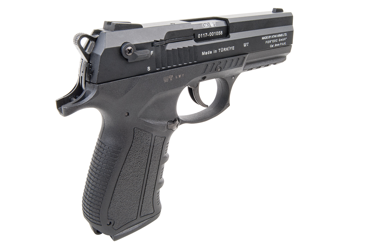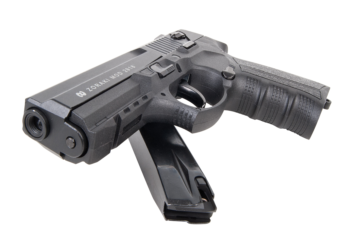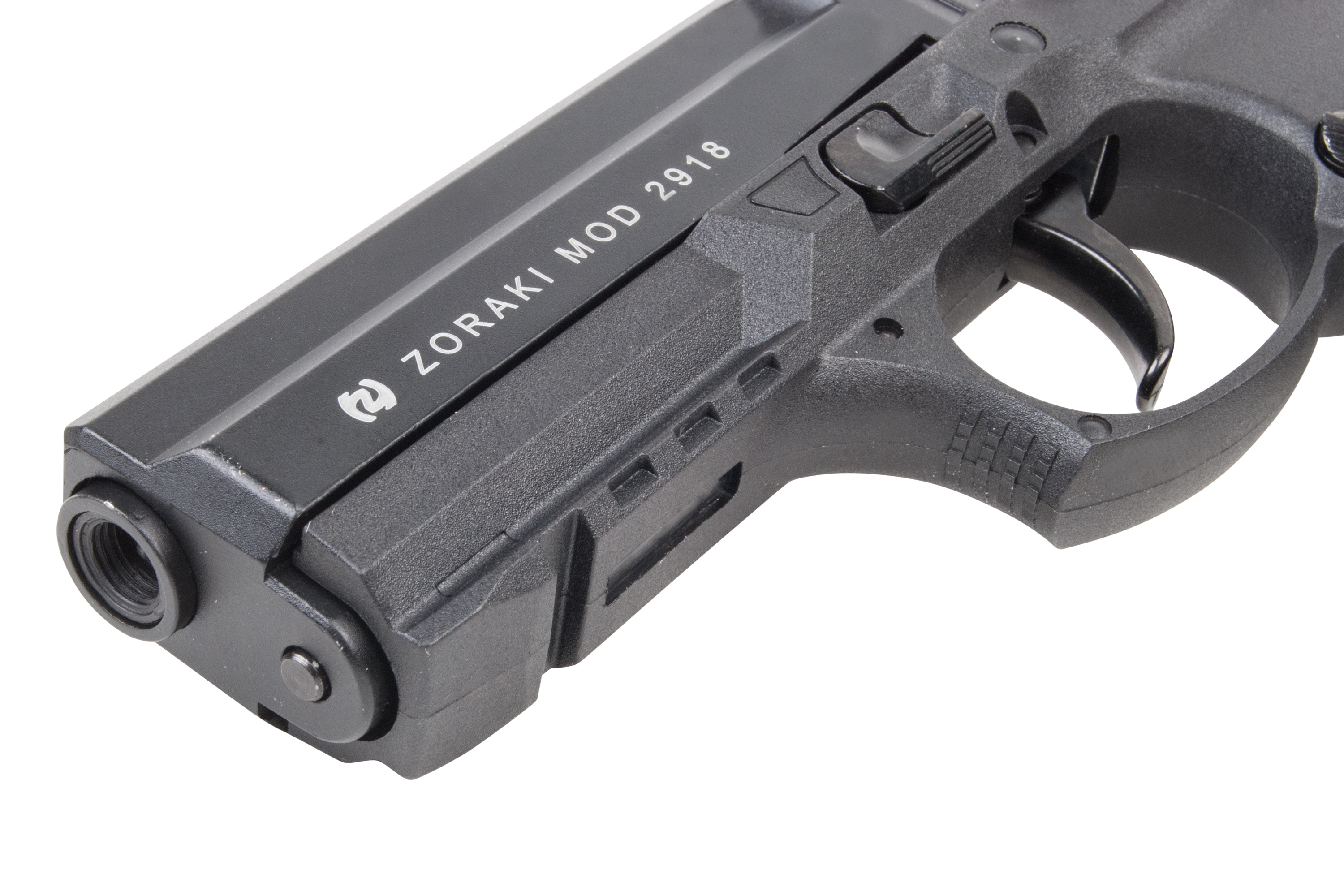 Die Gas-Signalpistole aus dem Hause Zoraki verfügt über ein Polymer-Griffstück, einen Schlitten aus Metall, stahlverstärkte Funktionsteile, eine integrierte Railschiene und einen Double-Action Abzug. Sie kann mit wenigen Handgriffen zerlegt werden.