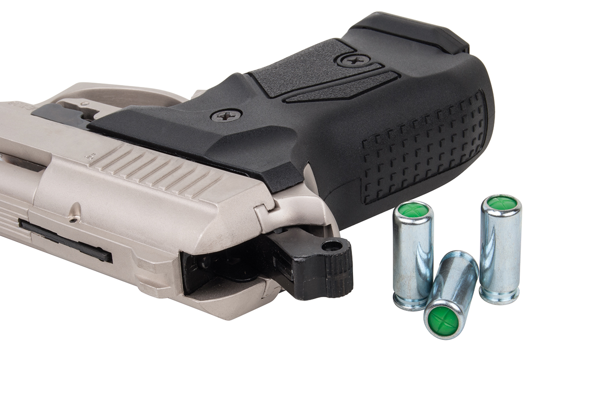 Moderne und kompakte Gas-Signalpistole mit ergonomischem Griffstück, stahlverstärkten Funktionsteilen und Single-/Double-Action Abzug. Sie kann mit wenigen Handgriffen zerlegt werden.