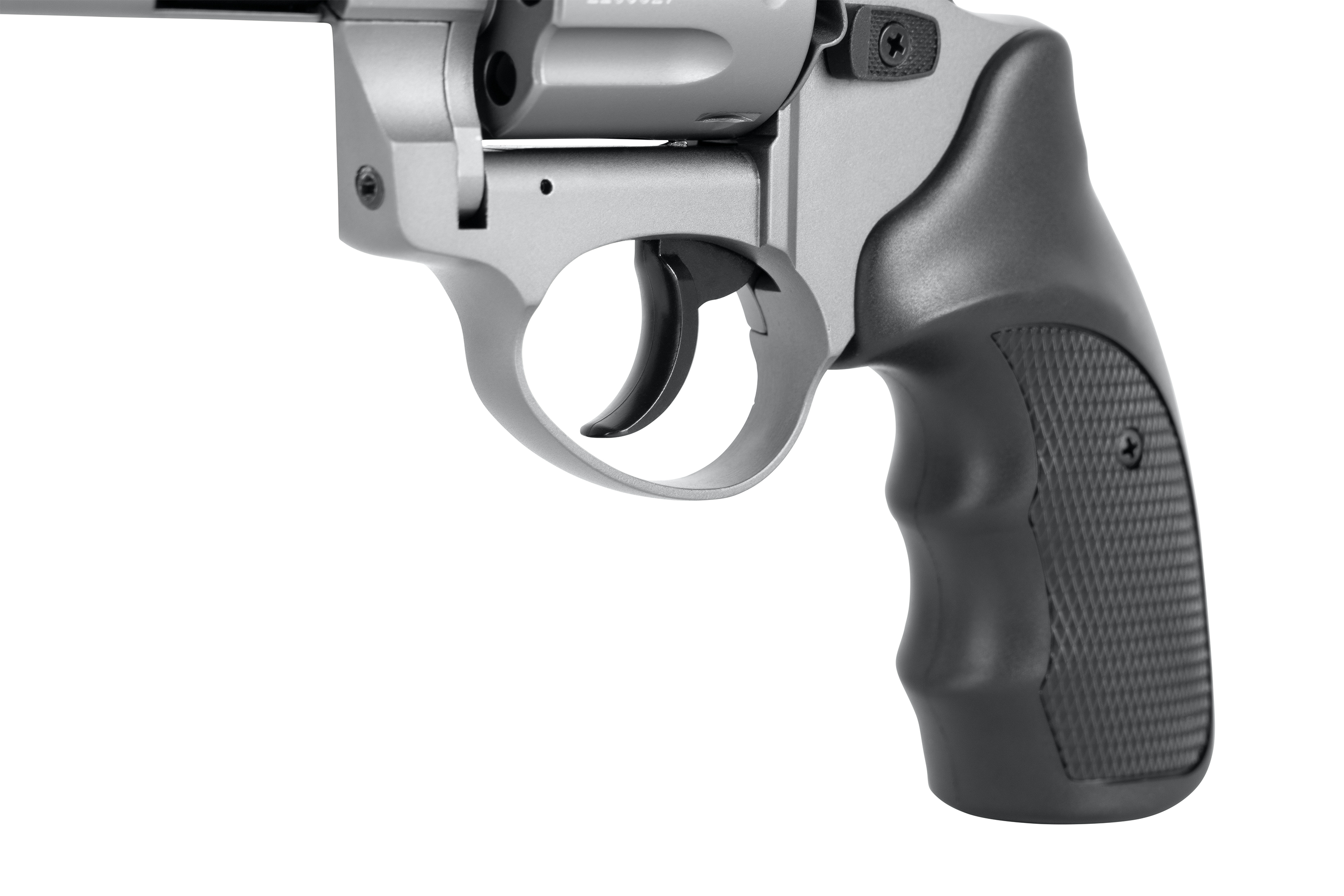 Der zuverlässige Gas-Signal-Revolver aus dem Hause Zoraki wird sehr hochwertig verarbeitet. Er verfügt über einen Single-/Double-Action-Abzug und ergonomisch geformte Griffschalen aus robustem Kunststoff. Trommel und Funktionsteile bestehen aus Stahl.