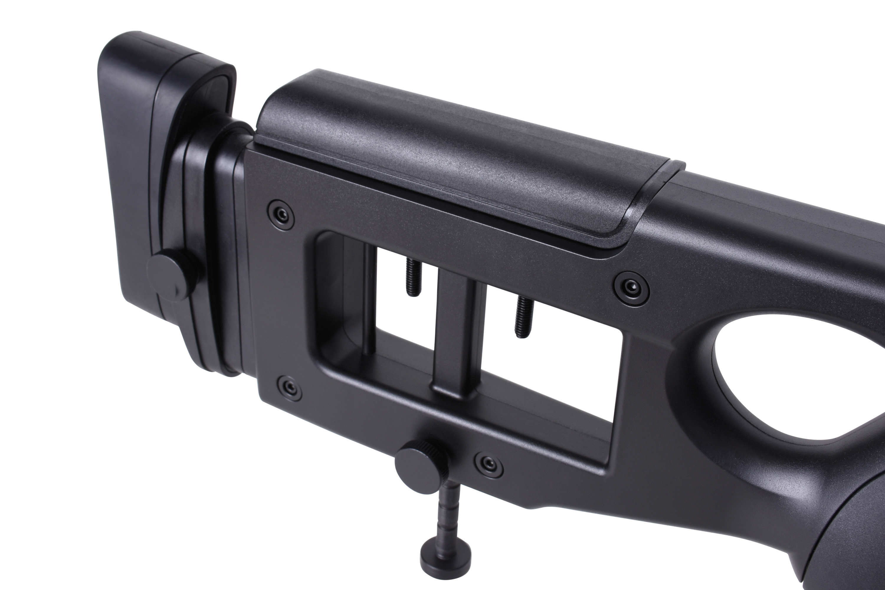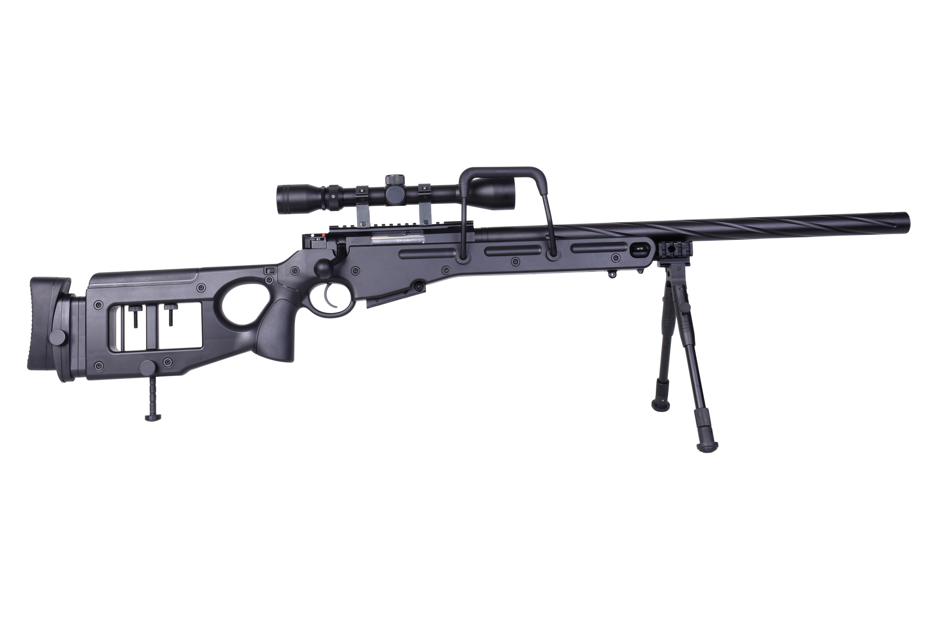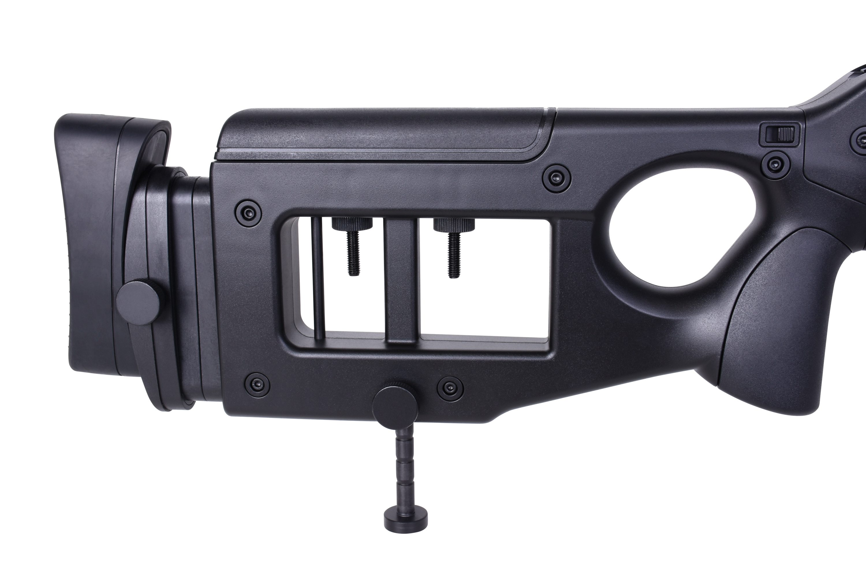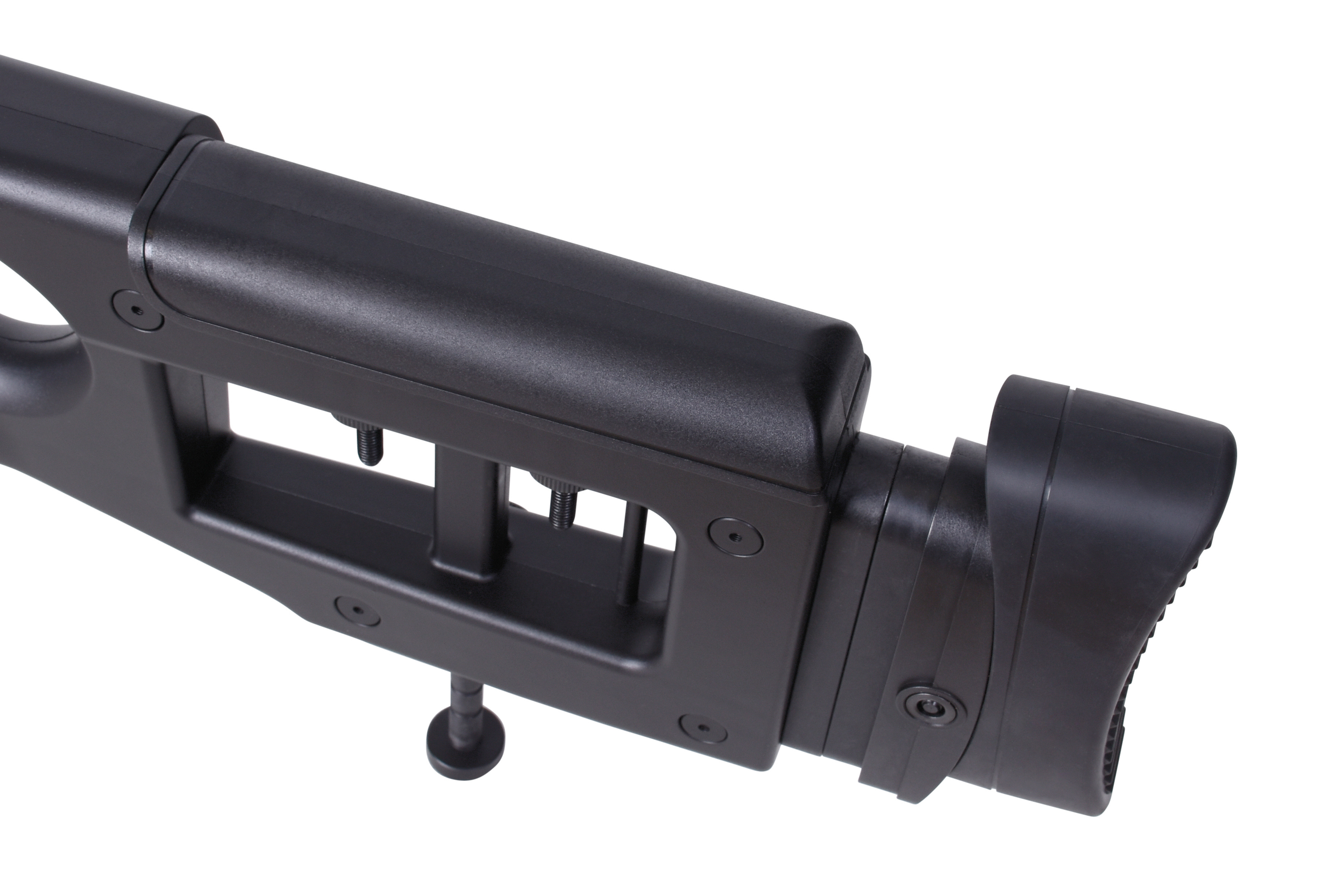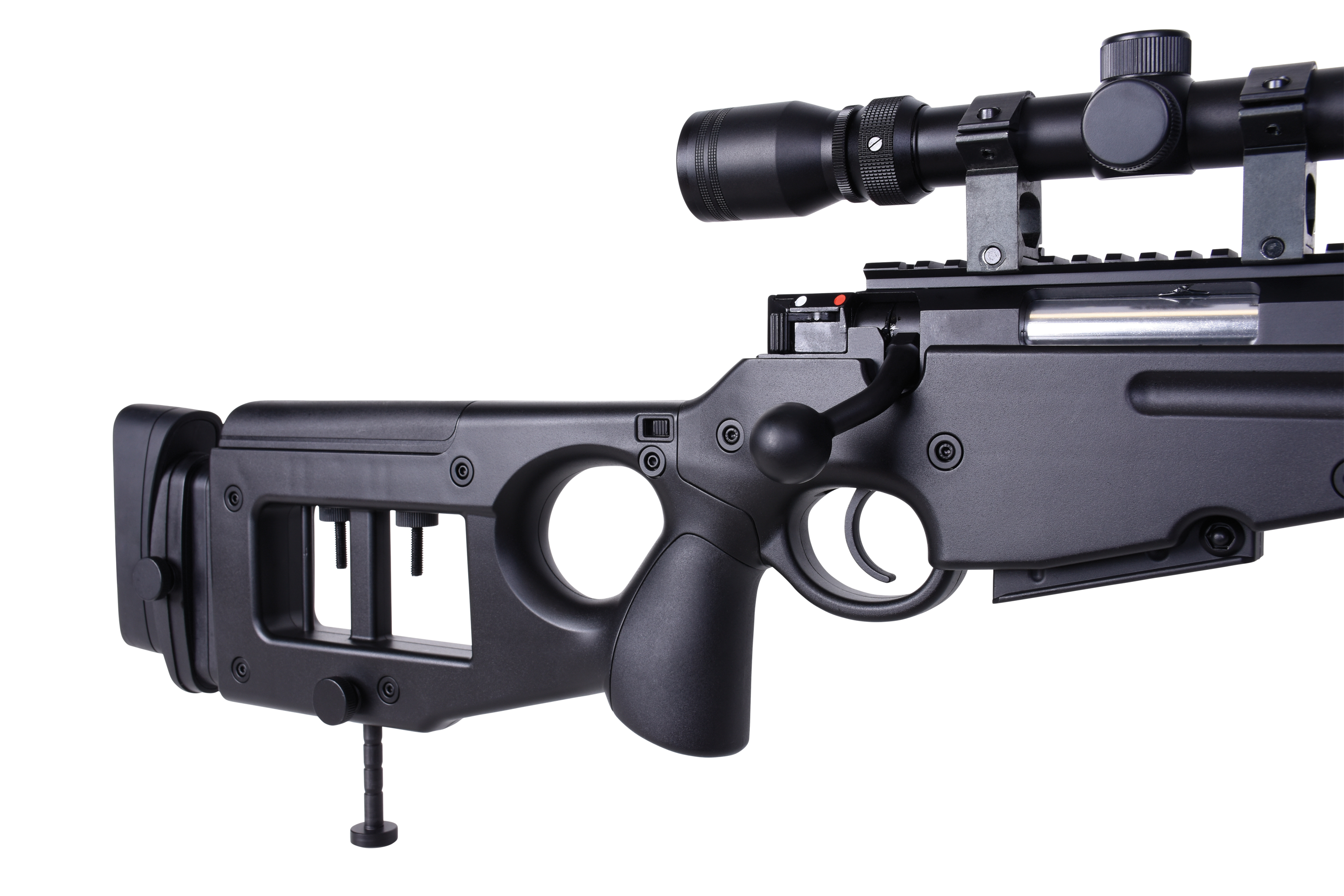 Das MB4420 Sniper verfügt über eine seitlich- und höhenverstellbare Wangenauflage, eine gummierte verstellbare Schaftbacke und eine verstellbare Schaftstütze. Die Sicherung befindet sich auf der rechten Seite. Des Weiteren kommt das MB4420 Sniper mit drei Picatinnyschienen, einem Trageriemen, einem Tragegriff, einem einstellbaren Zweibein und einem Zielfernrohr 3-9x40.