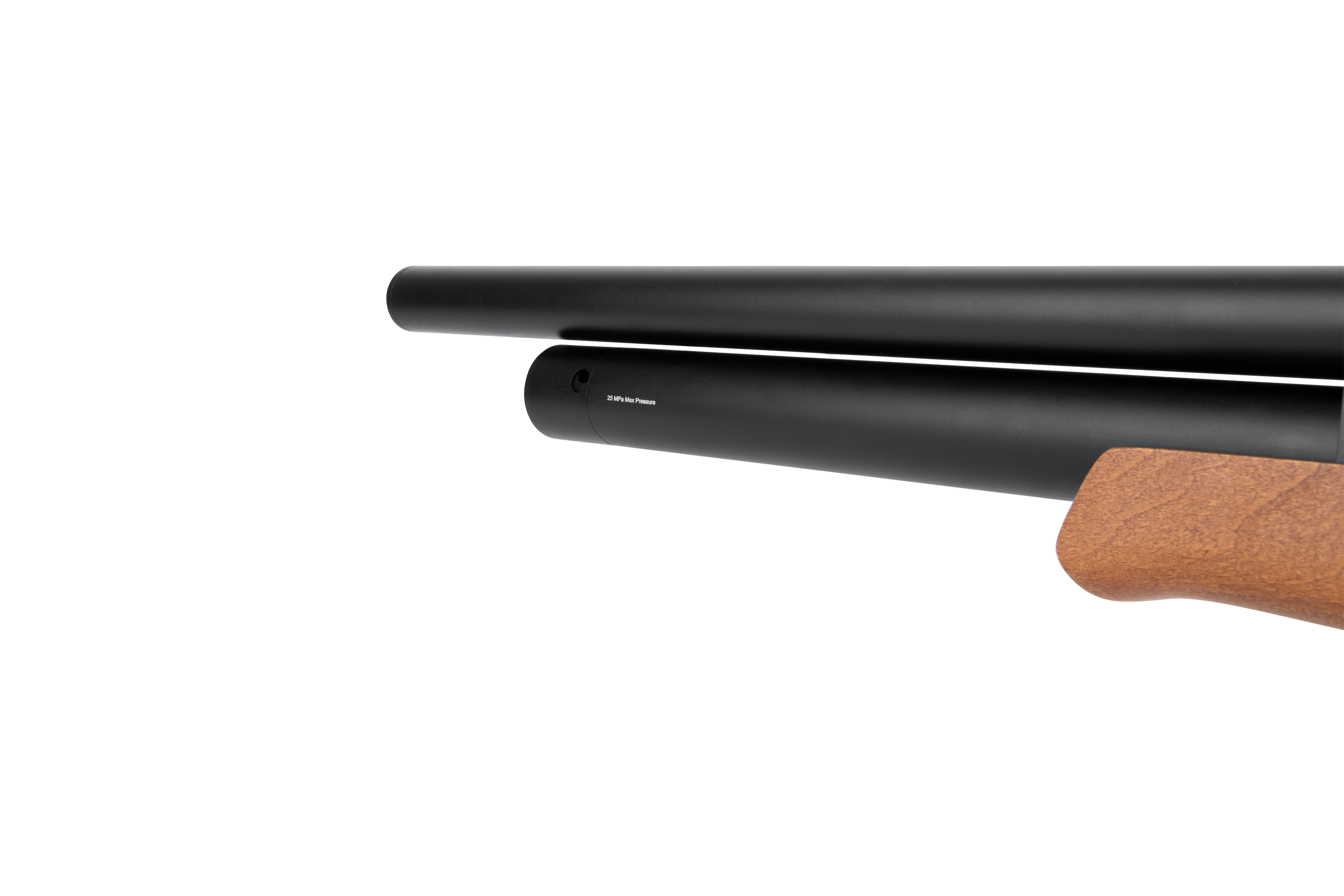 Das Pressluftgewehr ist mit einer gefrästen 11mm Prismenschiene ausgestattet, sodass du problemlos ein Zielfernrohr oder ein Red Dot montieren kannst. Da Kimme und Korn nicht enthalten sind, empfehlen wir dir den Einsatz hochwertiger Optiken für maximale Präzision. Das modulare Design macht das PCP Luftgewehr vielseitig und perfekt für unterschiedliche Disziplinen geeignet.