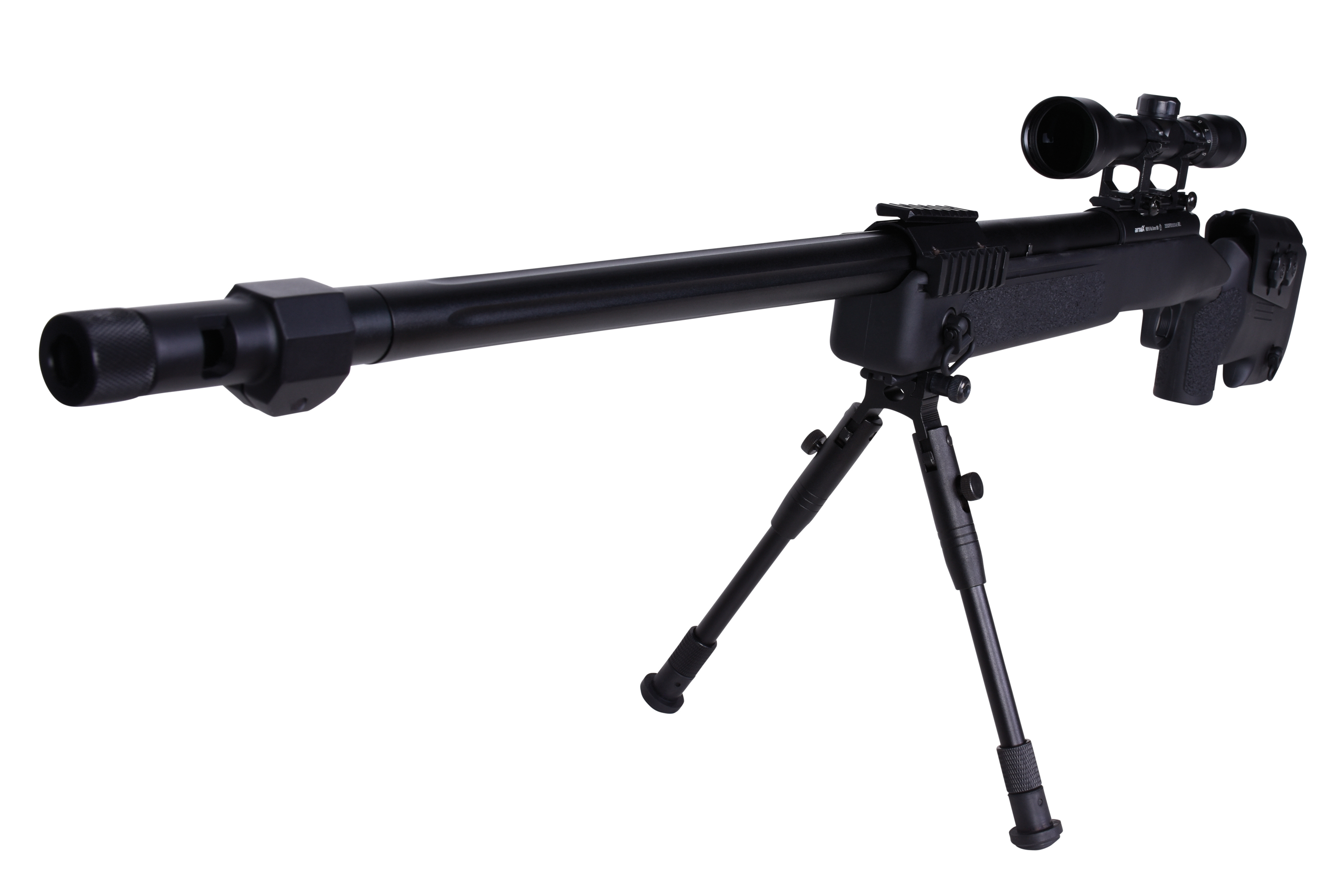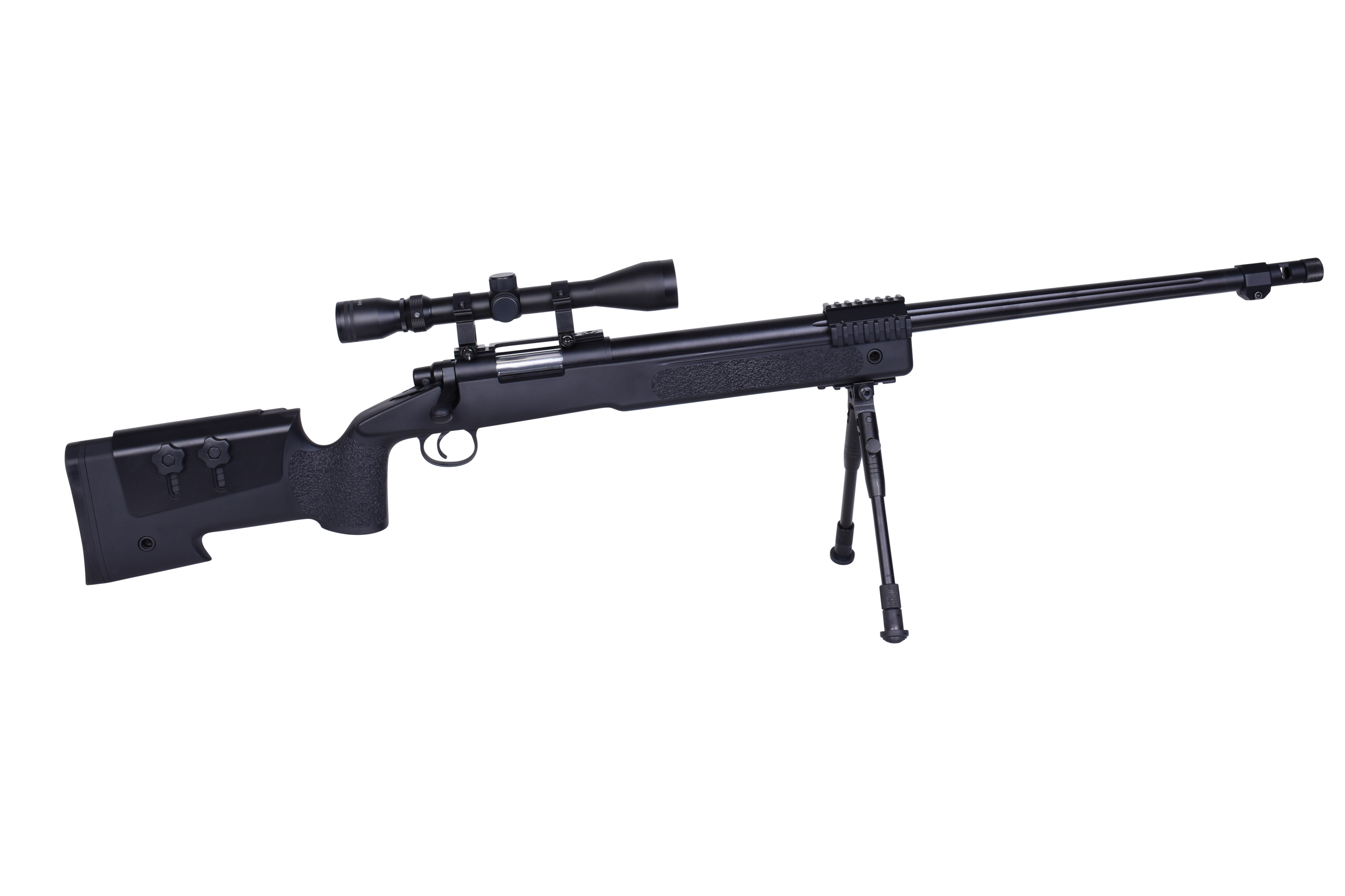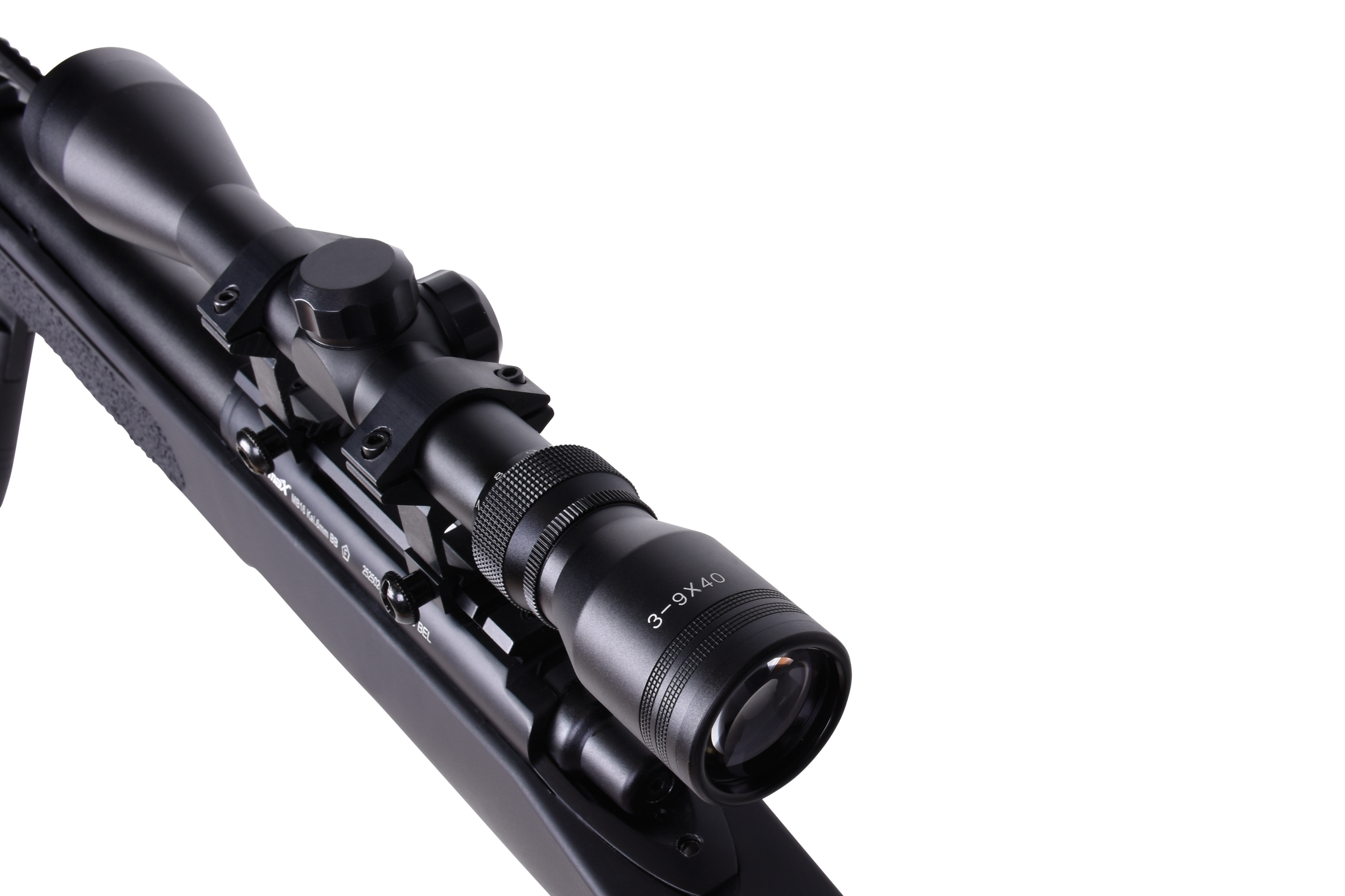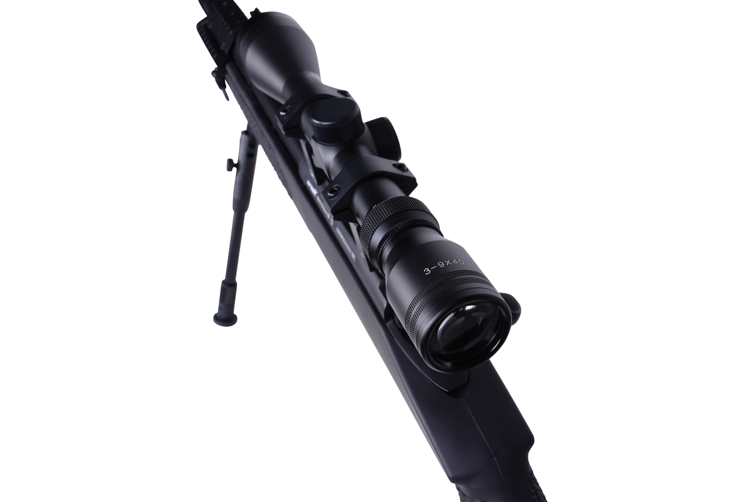 Im Lieferumfang sind ein Zielfernrohr 3-9x40, ein einstellbares Zweibein, ein Trageriemen und drei Picatinny-Schienen enthalten.