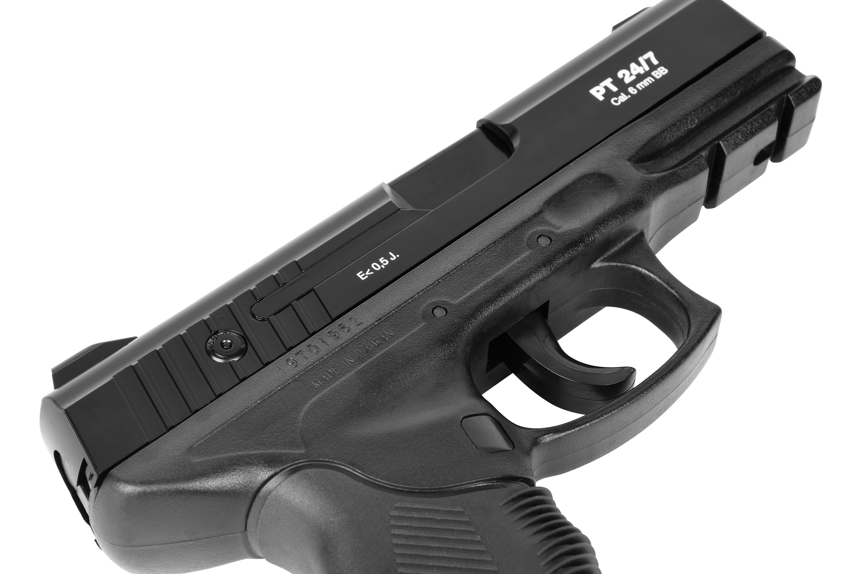 Diese innovative Pistole aus dem Hause KWC ist ein detaillierter Nachbau der weltbekannten PT 24/7. Die Waffe wird aus robustem ABS Kunststoff gefertigt, welches als besonders bruchstabil, schlag- und kratzfest gilt.